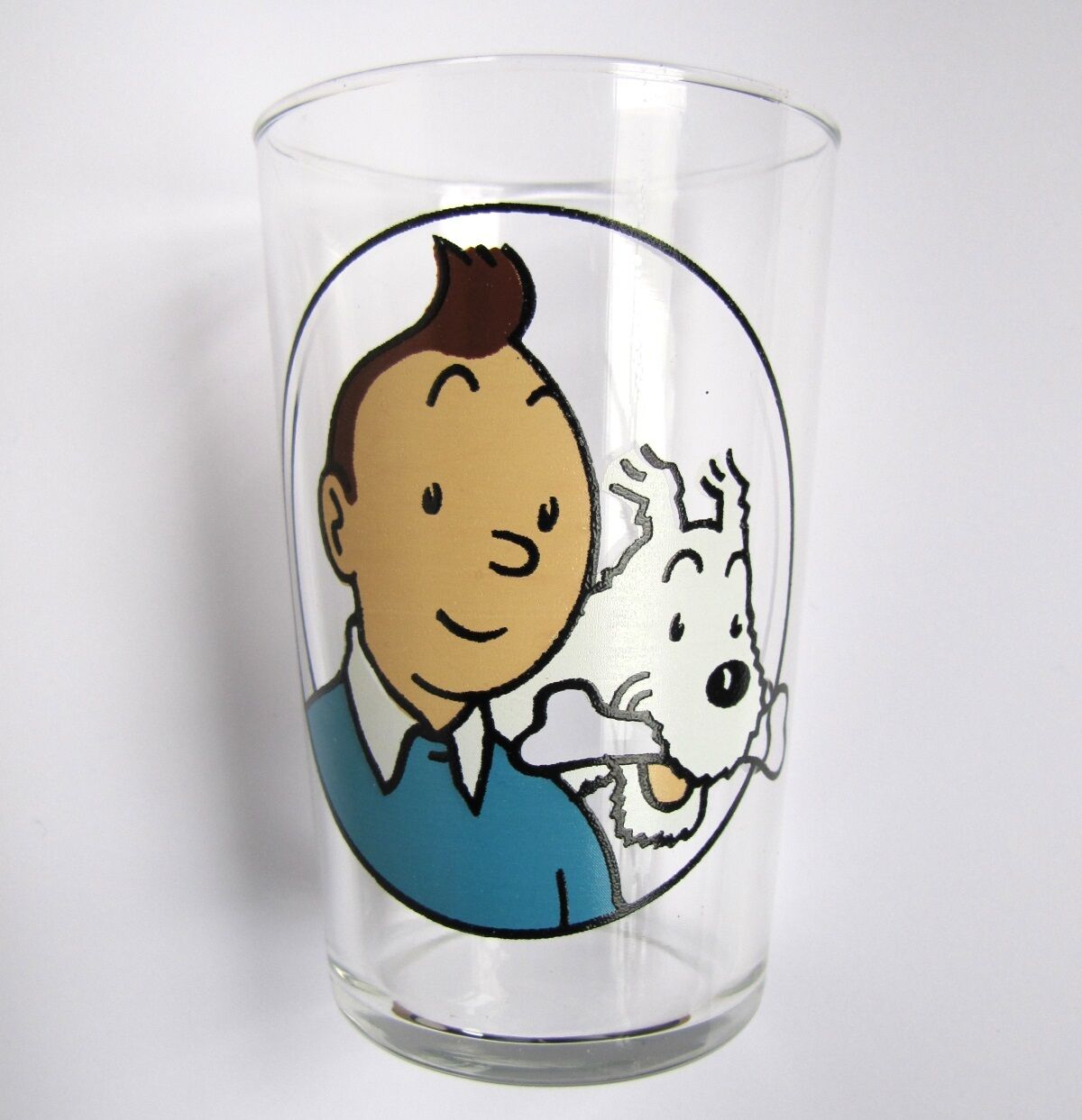 Verre sans inscription, représentant le buste de Tintin et Milou dans un cercle