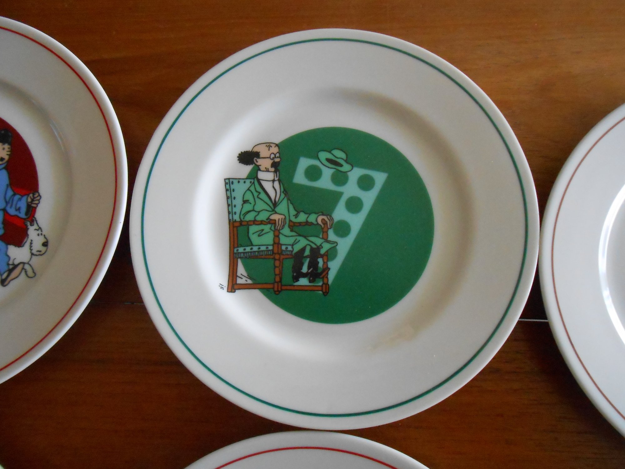 Série de 12 assiettes en porcelaine de 20cm, illustrées d'un symbole et d'un personnage de l'album représenté.
