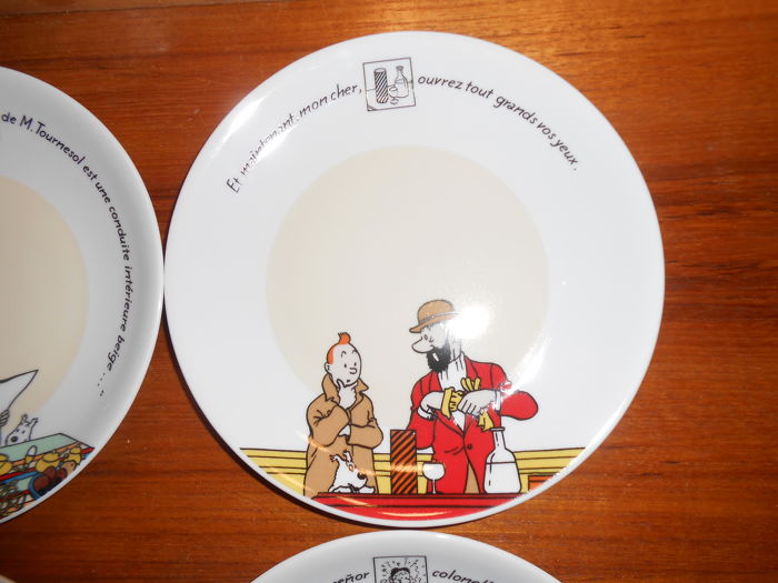 Série de 4 assiettes creuses (19,5 cm) en porcelaine, illustrée d'une image et d'une citation tirées de l'album "Les 7 boules de cristal".