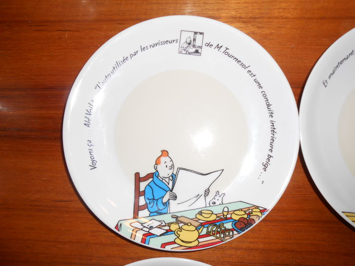 Série de 4 assiettes creuses (19,5 cm) en porcelaine, illustrée d'une image et d'une citation tirées de l'album "Les 7 boules de cristal".