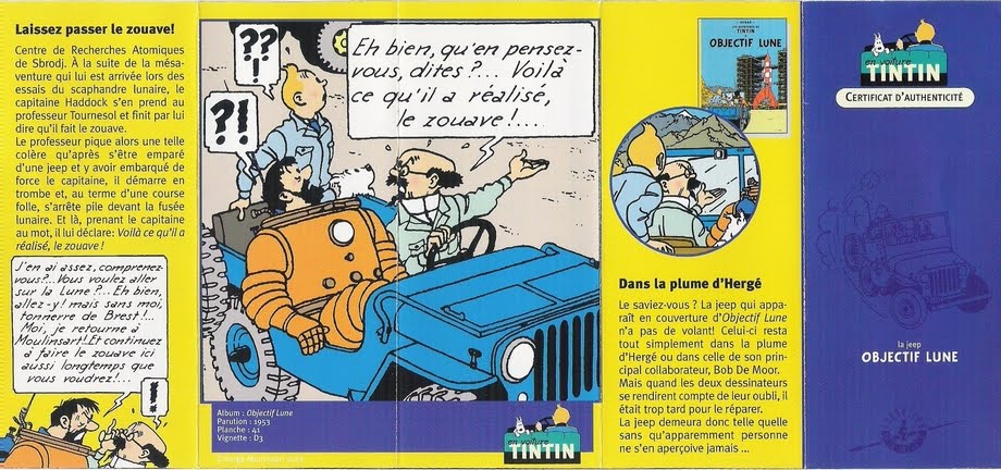 Volant : rien à dire sauf que le volant de la Jeep sur la couverture "Objectif Lune" n'apparaît pas alors que figure un petit essuie-glace qui lui disparaît dans l'album.