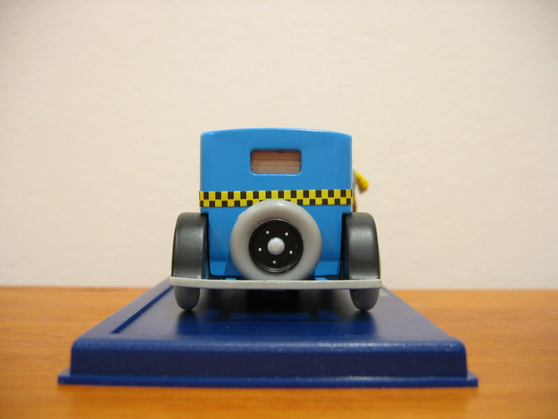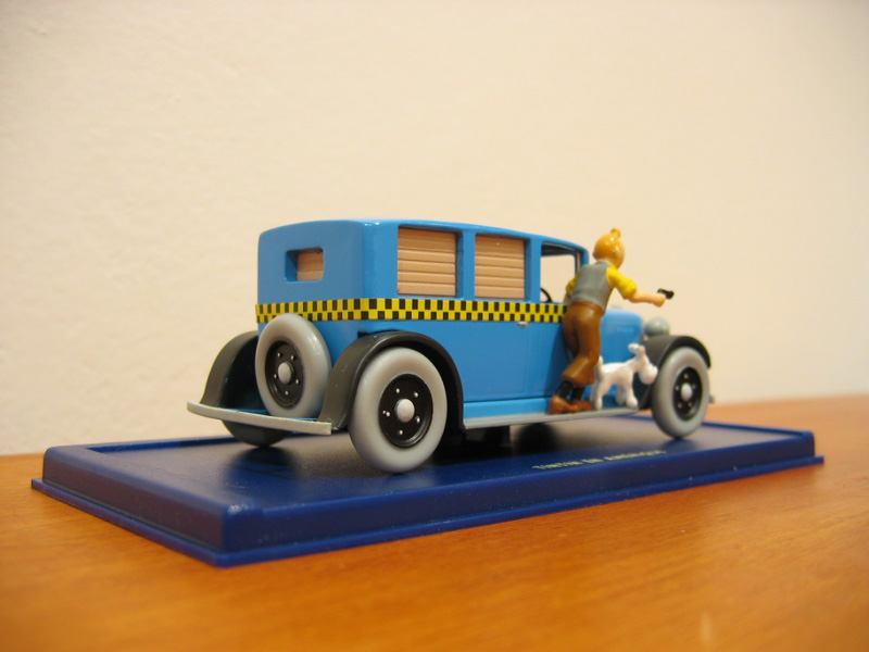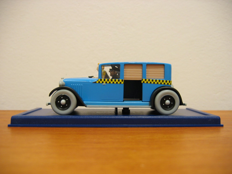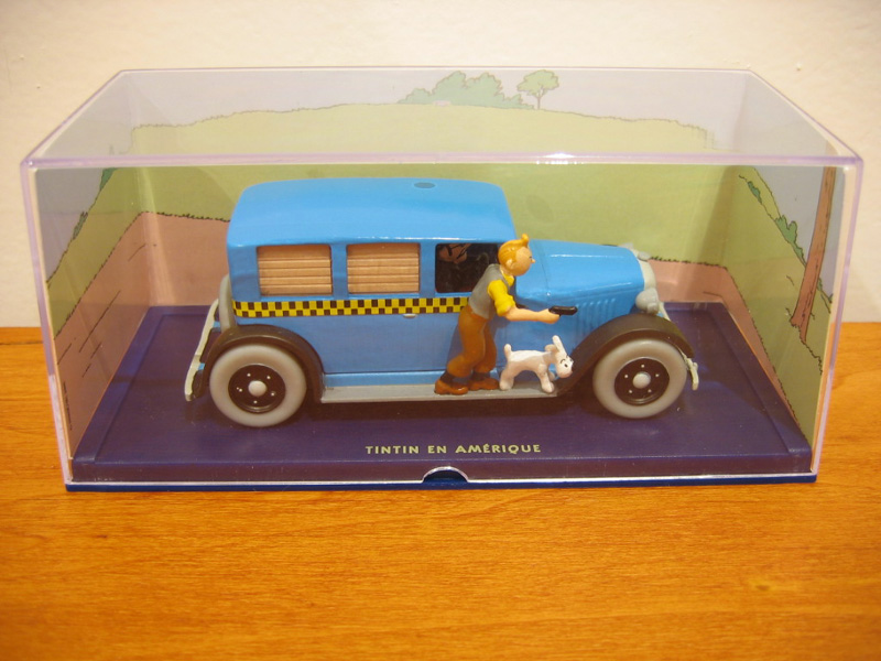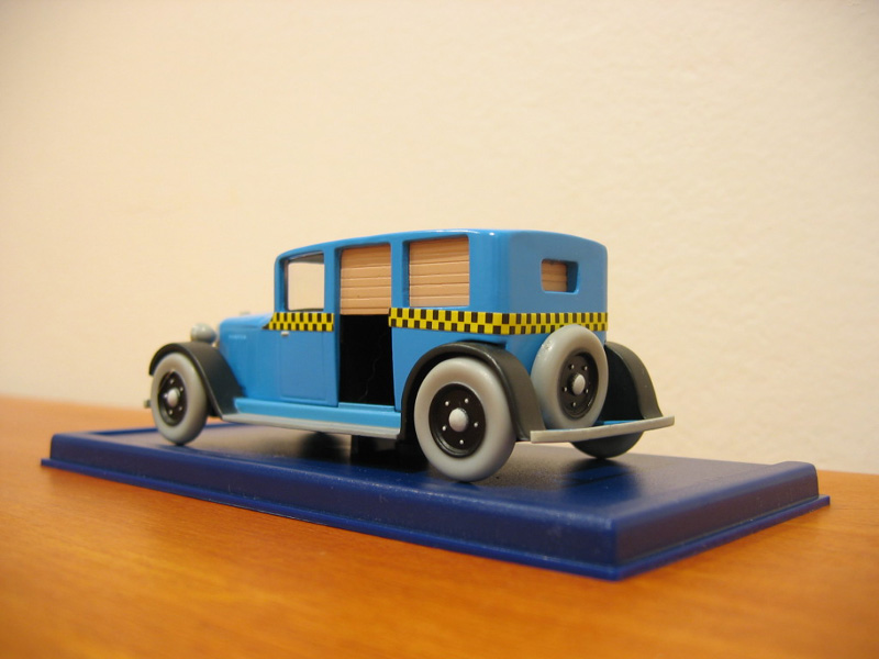 Carrosserie : le style retenu par Hergé est celui très populaire de la limousine ("sedan" en anglais). Tintin et Milou y sont d'ailleurs confortablement installés. Se distinguant des fameux "Yellow Cabs" américains, Hergé peindra son taxi en bleu au lieu du jaune qu'il utilisera néanmoins à la place du blanc traditionnel de la bande à damier ("checker" en anglais).