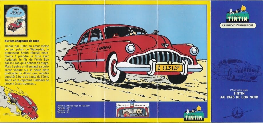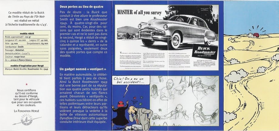 Traqué par Tintin au cœur même de son palais de Wadesdah, le professeur Smith réussit néanmoins à prendre la fuite avec Abdallah, le fils de l'émir Ben kalish Ezab qu'il détient en otage. Il est au volant d'une superbe américaine rouge et appuie sur le champignon en s'aventurant sur la seule piste praticable. Tintin et Haddock se lancent à ses trousses à bord de l'auto de l'émir… Pas de doute : la Buick que conduit à vive allure le professeur Smith est bien une Roadmaster 1949. A quatre-vingt-dix pour cent du moins. Comme le dit la publicité de l'époque : dans une telle voiture, vous êtes le "TOP MAN".