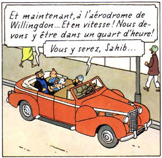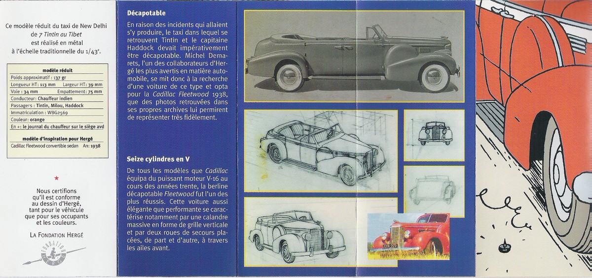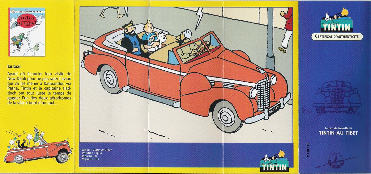 Tintin et le capitaine Haddock font escale à New-Delhi ! Ils en profitent pour visiter la ville mais le temps presse car l'avion pour Katmandou part dans vingt-cinq minutes. Nos amis doivent filer à l'aérodrome. Le capitaine Haddock exécute bien involontairement une cabriole pour prendre place dans ce splendide cabriolet qui les conduira à l'aéroport à temps, malgré de multiples rebondissements. Cette scène imaginée par Hergé obligea son collaborateur Michel Demarets, à rechercher une voiture décapotable susceptible d'accueillir le capitaine Haddock par la voie des airs. Il opta pour la Cadillac Fleetwood 1938.