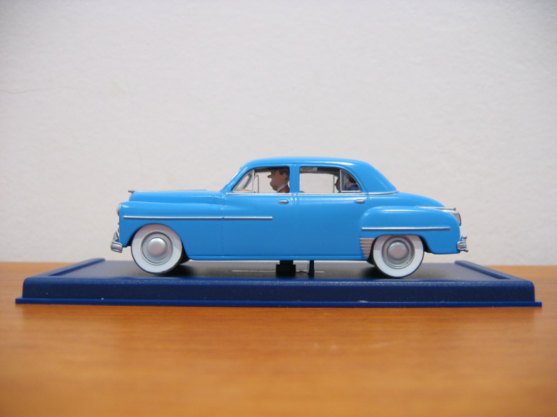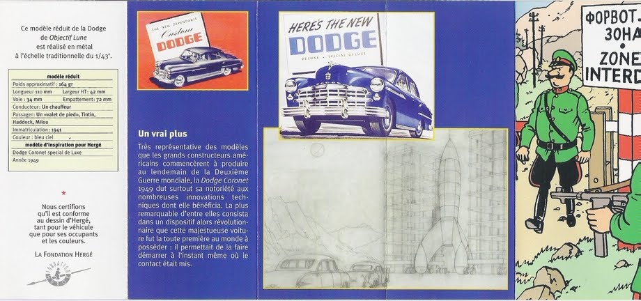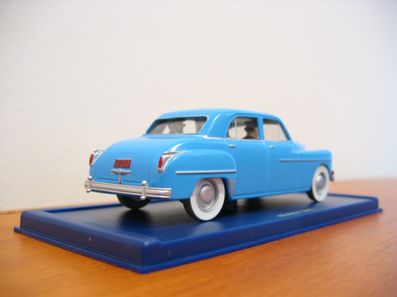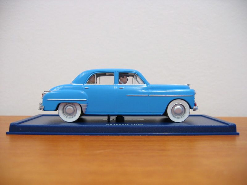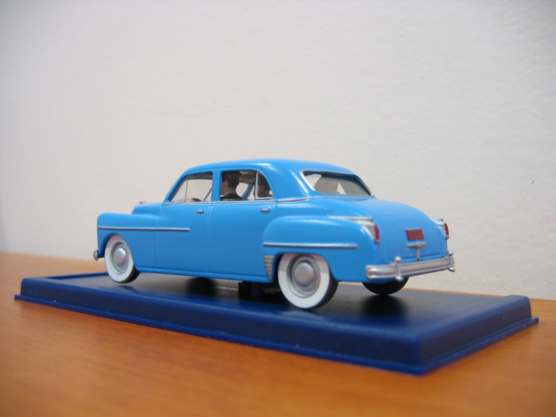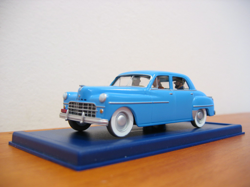 Partis rejoindre le professeur Tournesol en Syldavie, Tintin et le capitaine Haddock arrivent à l'aéroport de Klow. Ils s'étonnent que le porfesseur Tournesol ne soit pas venu les accueillir… L'américaine dans toute sa splendeur, la Dodge Coronet 1949 est très représentative des voitures américaines au lendemain de la 2ème guerre mondiale.
