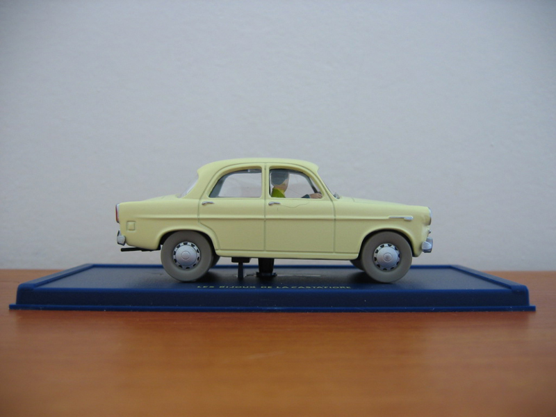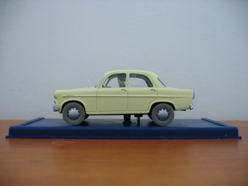 Symbole des produits dérivés de Tintin, la série "En voiture Tintin", éditée par Atlas. Un véritable succès populaire. Fruit d'un partenariat entre Moulinsart et les Editions Atlas, elle a ravi et ravit encore les tintinophiles. Prévue au départ sur une quarantaine de voitures, la collection a été agrandie pour inclure des modèles écartés à l'origine. Toutes sont issues des bulles de la série. On y croise aussi bien la jeep rouge de Dupont et Dupond endormis dans le désert que la Cadillac Fleetwood, le taxi de New-Delhi qu'utilise Tintin au Tibet. Spécialiste de ce genre de produit, Atlas propose des objets soignés (les personnages sont peints à la main) et des notices très précises qui décrivent même la documentation automobile utilisée par Hergé et les libertés qu'il a prises avec les modèles réels. Les miniatures sont fabriquées en Chine, mais les usines et les produits sont rigoureusement contrôlés par Moulinsart.