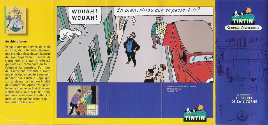 Symbole des produits dérivés de Tintin, la série "En voiture Tintin", éditée par Atlas. Un véritable succès populaire. Fruit d'un partenariat entre Moulinsart et les Editions Atlas, elle a ravi et ravit encore les tintinophiles. Prévue au départ sur une quarantaine de voitures, la collection a été agrandie pour inclure des modèles écartés à l'origine. Toutes sont issues des bulles de la série. On y croise aussi bien la jeep rouge de Dupont et Dupond endormis dans le désert que la Cadillac Fleetwood, le taxi de New-Delhi qu'utilise Tintin au Tibet. Spécialiste de ce genre de produit, Atlas propose des objets soignés (les personnages sont peints à la main) et des notices très précises qui décrivent même la documentation automobile utilisée par Hergé et les libertés qu'il a prises avec les modèles réels. Les miniatures sont fabriquées en Chine, mais les usines et les produits sont rigoureusement contrôlés par Moulinsart.