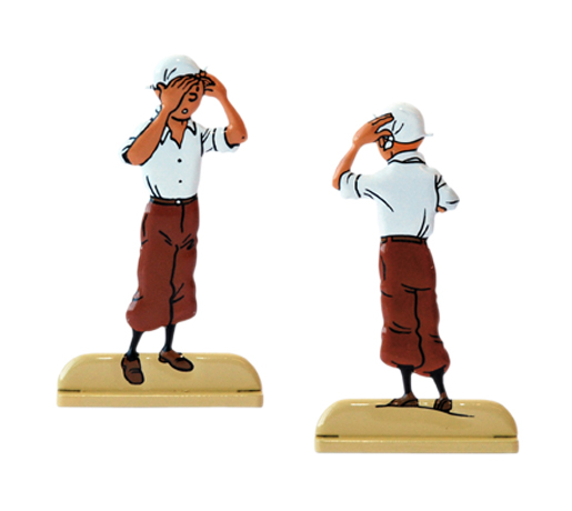 Ces figurines en relief, inspirées des plats d'étain du 18e siècle, accompagnent chaque album de la collection "Les Archives Tintin" distribuée par Atlas en 2012.