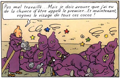 Plumier métallique ovale, représentant Tintin en membre de la secte de Kih-Oskh.