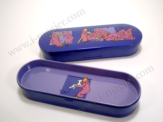Série de plumiers ovales en métal, éditée par Moulinsart SA dès 2005.