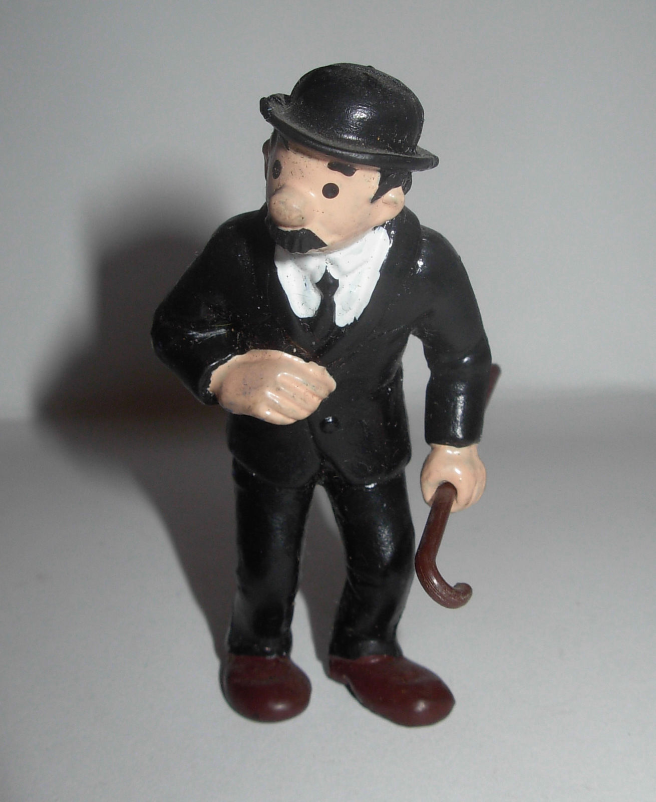 Dupont portant sa canne dans sa main gauche. La canne est amovible et souvent manquante.