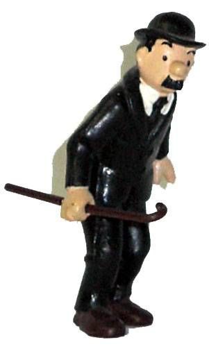 Dupond portant sa canne dans sa main droite. La canne est amovible et souvent manquante.