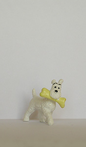 Inscription sur le flanc droit © HERGE CE BULLY MADE IN GERMANY. Os jaune, plastique souple.