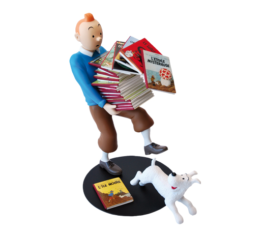 Plusieurs éditions ont été produites, limitées chacunes à 2500 ou 3000 exemplaires. Pour chaque édition, les albums tenus par Tintin et celui posé sur le sol sont différents.