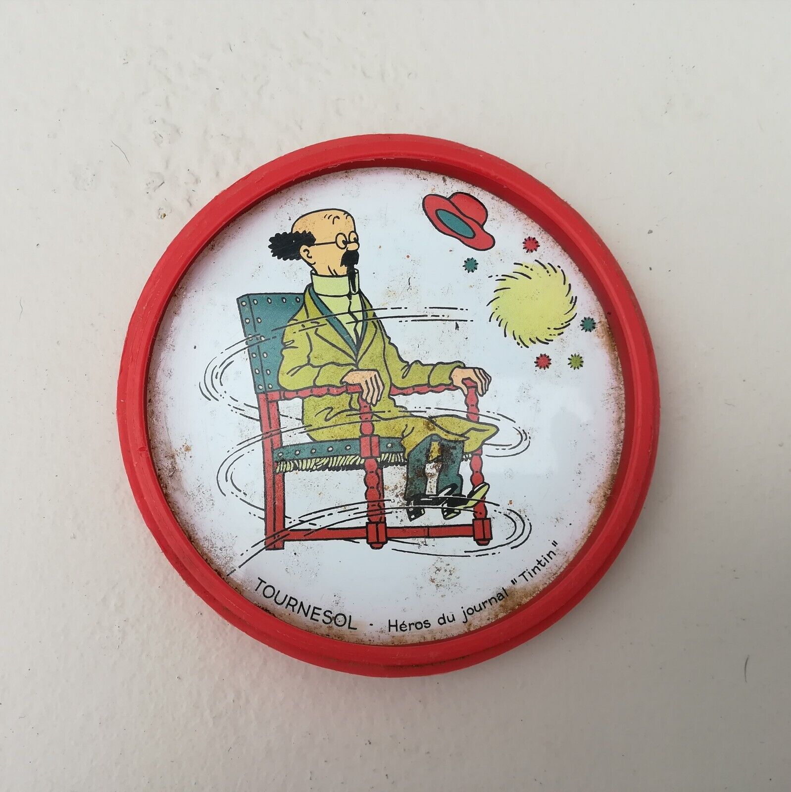 Série de couvercles de boites Tonimalt qui, une fois enlevés, servaient de dessous de verre d'un diamètre de 10 cm. Les bords des sous-verres pouvaient être livrés en noir, bleu, rouge et blanc.