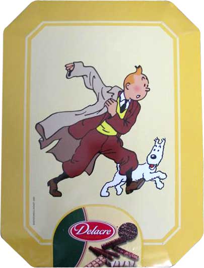 Première boîte de la série, une unique boîte jaune représentant Tintin courant avec son imperméable. Sortie en fin 2002 pour la période de Noël.