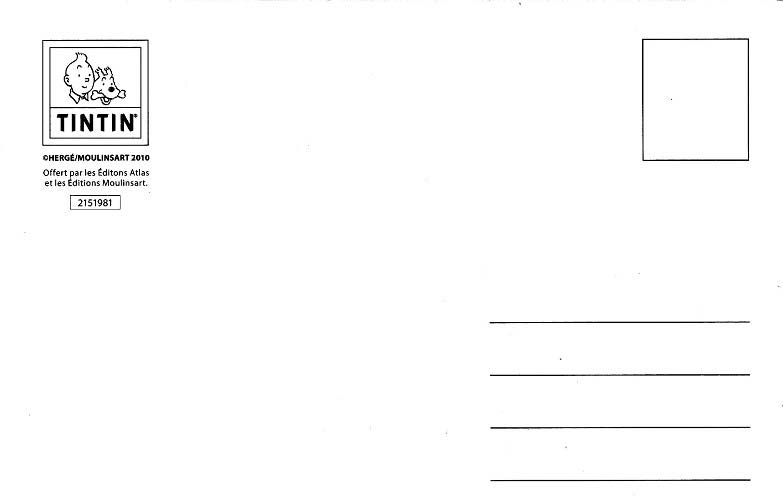 Carte postale distribuée à l'achat du premier numéro de la série "Les Archives Tintin" en 2010.