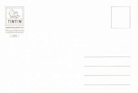 Carte postale offerte par les éditions Atlas et les éditions Moulinsart.