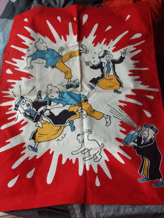 Linge en coton, illustré de motif de l'album "Tintin au Pays de l'Or Noir"