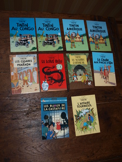 Série de cartes postales doubles, illustrées des couvertures des albums.
