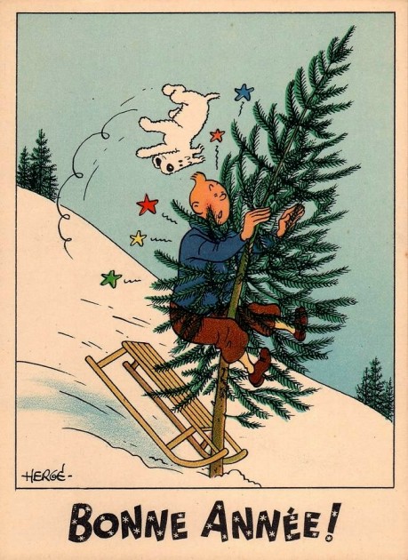 Elles reproduisent des compositions originales de Hergé avec la mention "Joyeux Noël" ou "Bonne année"