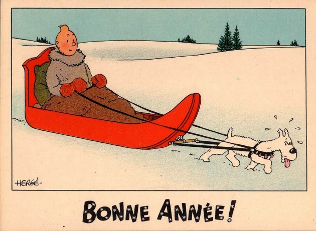Elles reproduisent des compositions originales de Hergé avec la mention "Joyeux Noël" ou "Bonne année"