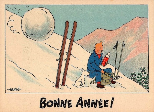Elles reproduisent des compositions originales de Hergé avec la mention "Joyeux Noël" ou "Bonne année"