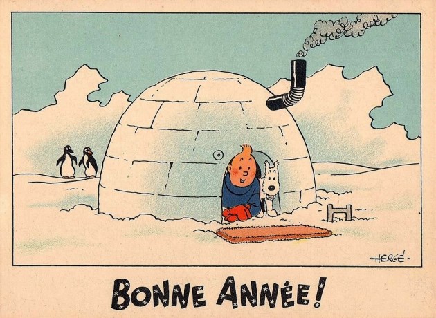 Elles reproduisent des compositions originales de Hergé avec la mention "Joyeux Noël" ou "Bonne année"