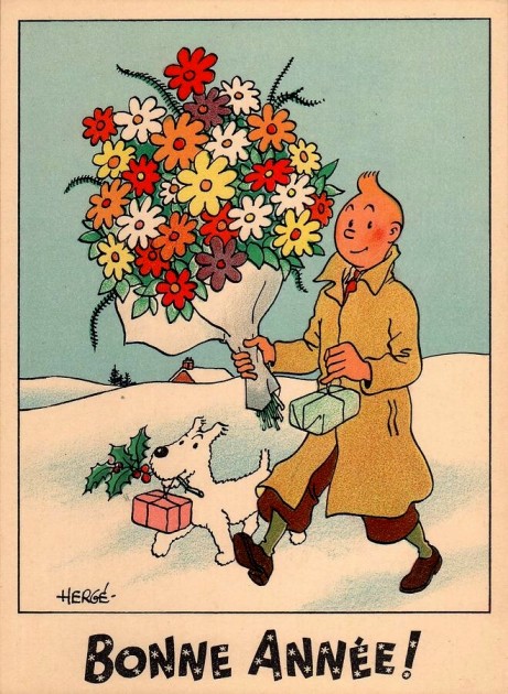 Elles reproduisent des compositions originales de Hergé avec la mention "Joyeux Noël" ou "Bonne année"