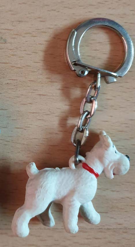 Porte-clef Milou offert en 1966 et en 1967 pour l'essayage d'une paire de chaussures Tintin.