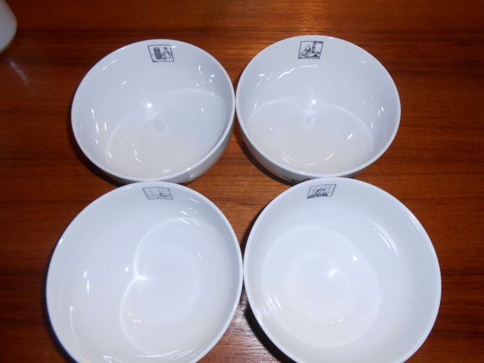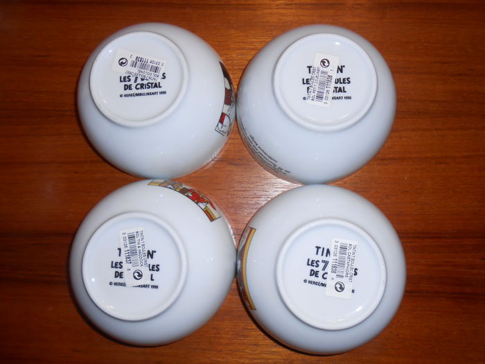 Série de 4 bols en porcelaine, illustrée d'une image et d'une citation tirées de l'album "Les 7 boules de cristal".