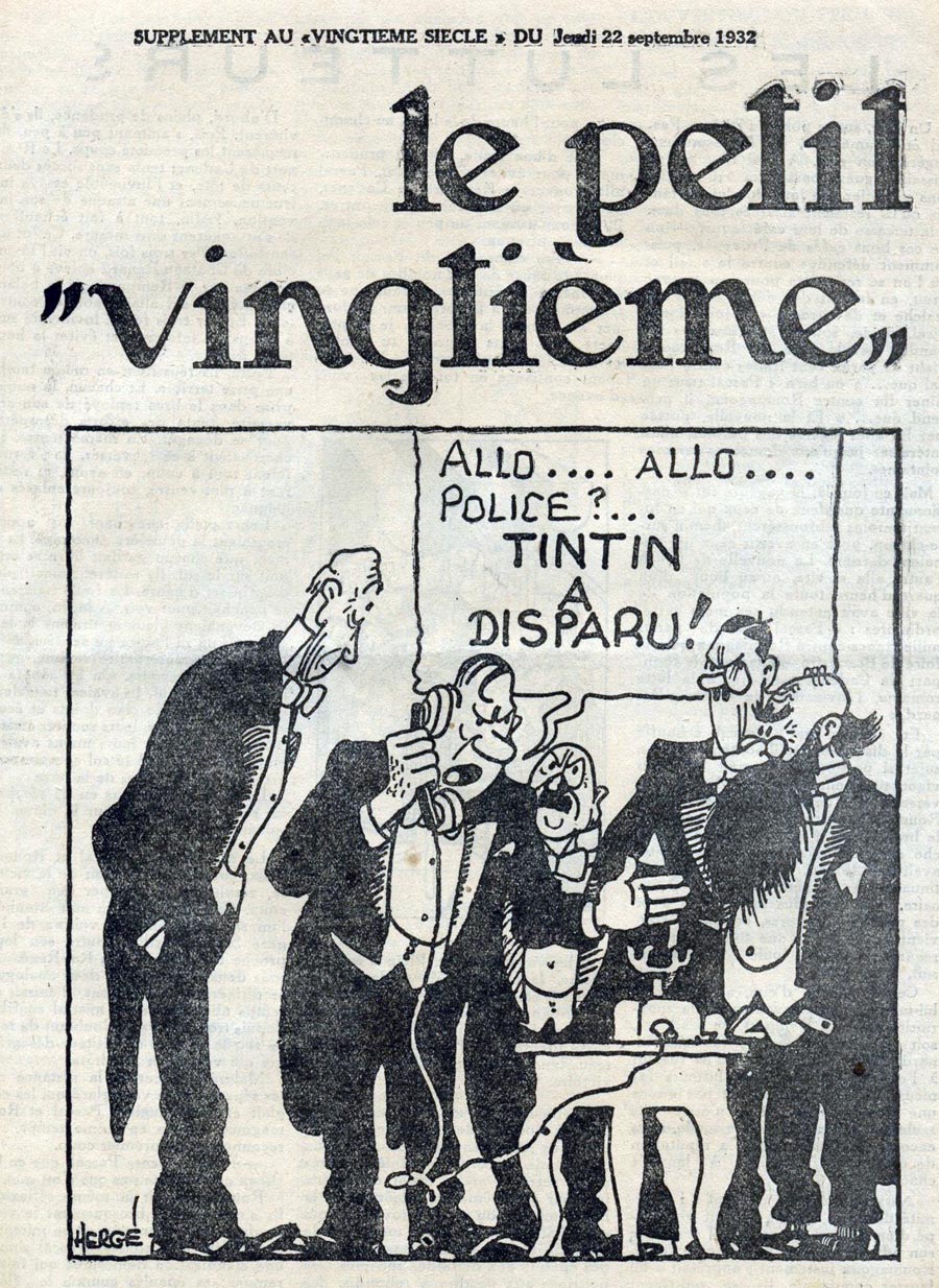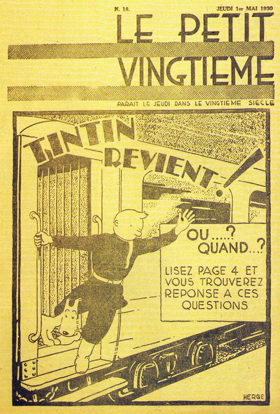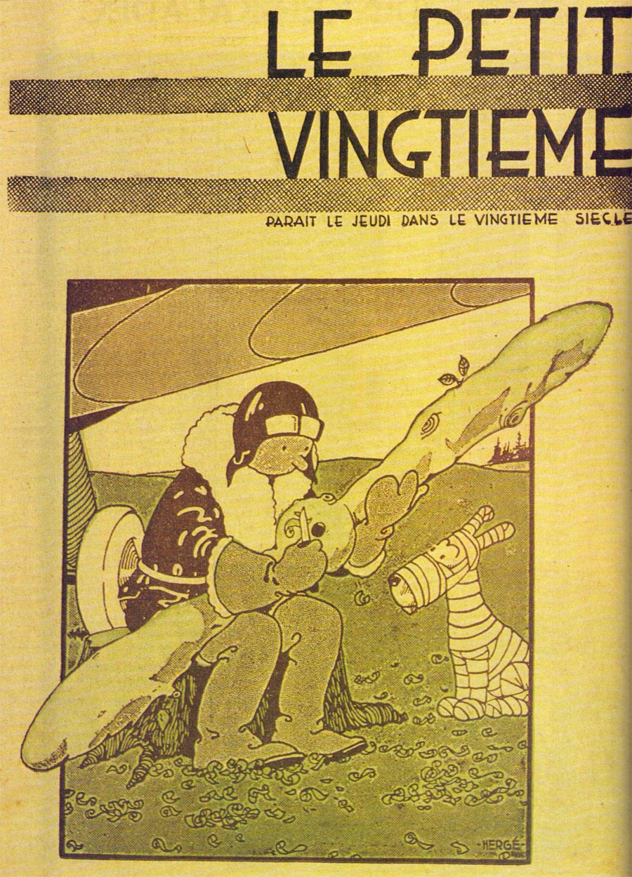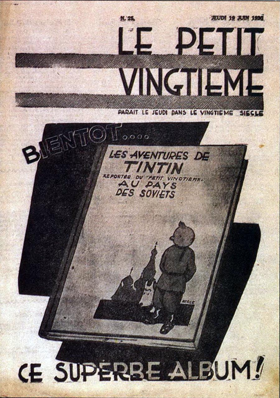 Le rédacteur en chef du Petit Vingtième était Georges Remi, plus connu sous le pseudonyme Hergé. Après avoir illustré pendant 10 semaines une histoire écrite par un rédacteur sportif du nom d’Armand De Smet (L’extraordinaire aventure de Flup, Nénesse, Poussette et Cochonnet), Hergé crée, le 10 janvier 1929, son propre personnage : Tintin, et l’envoie, sur les conseils de l’abbé Wallez (qui ne portait pas les “Bolcheviks” dans son cœur… loin de là), au pays des Soviets. C’est là que l’aventure véritable du “Petit Vingtième” commence vraiment ainsi que celle de Tintin !