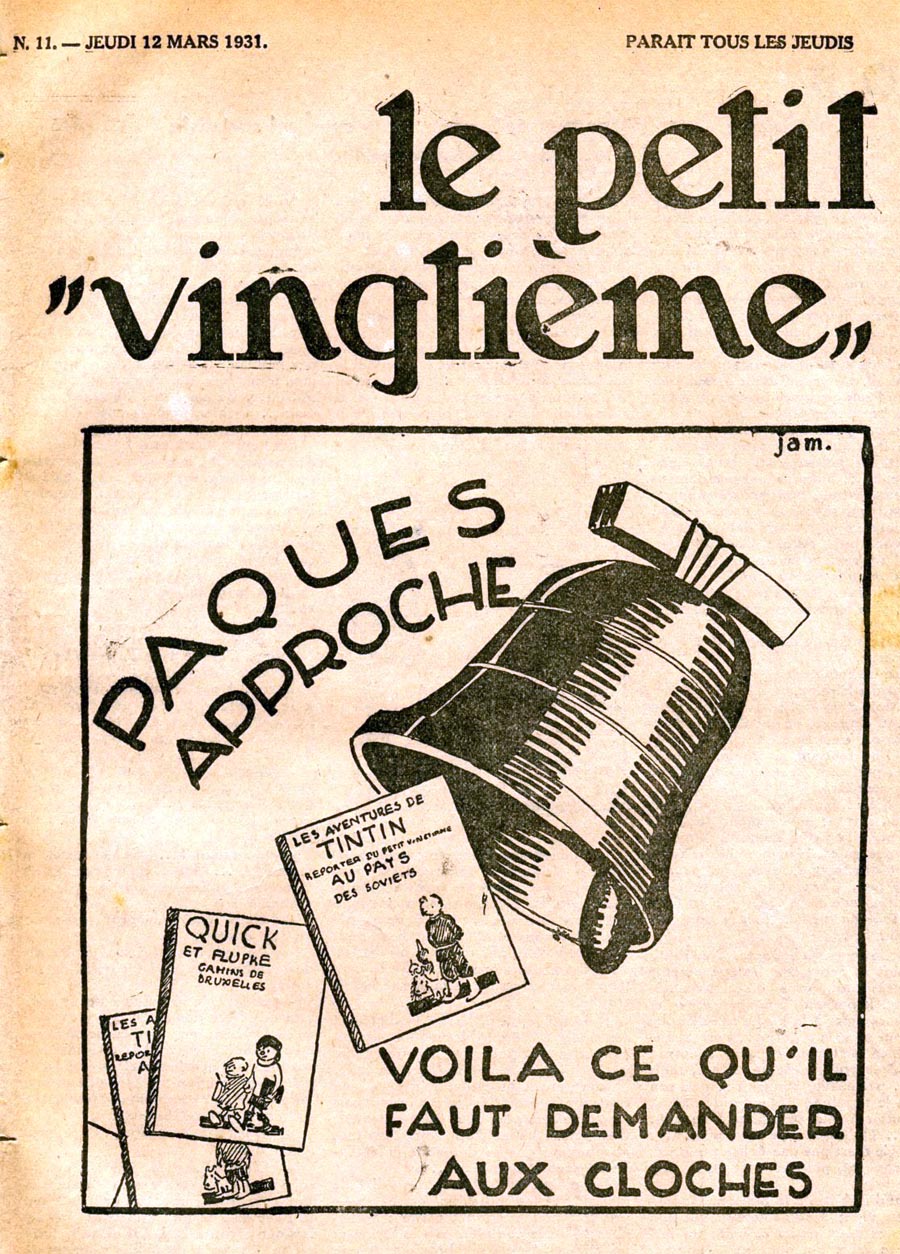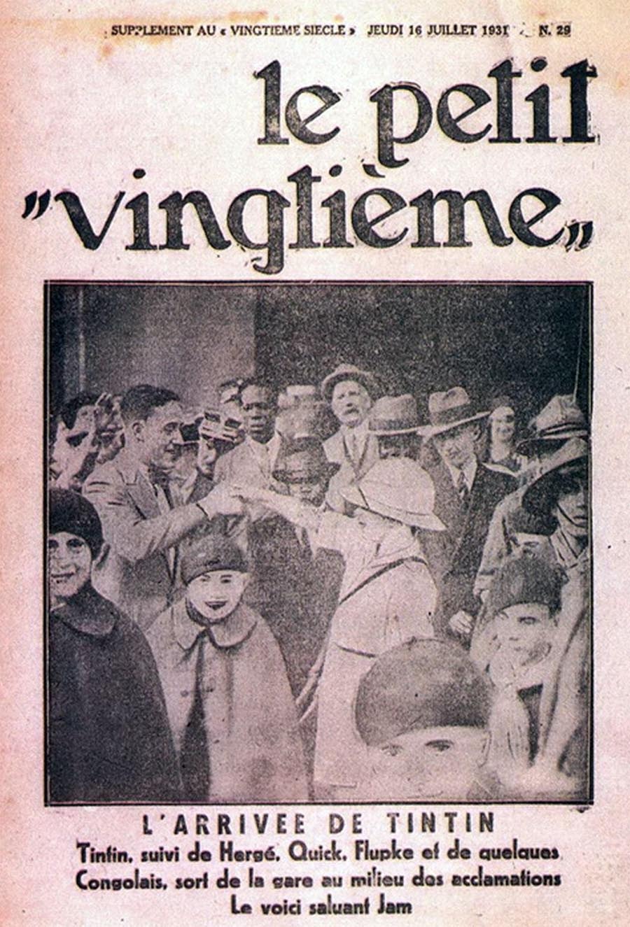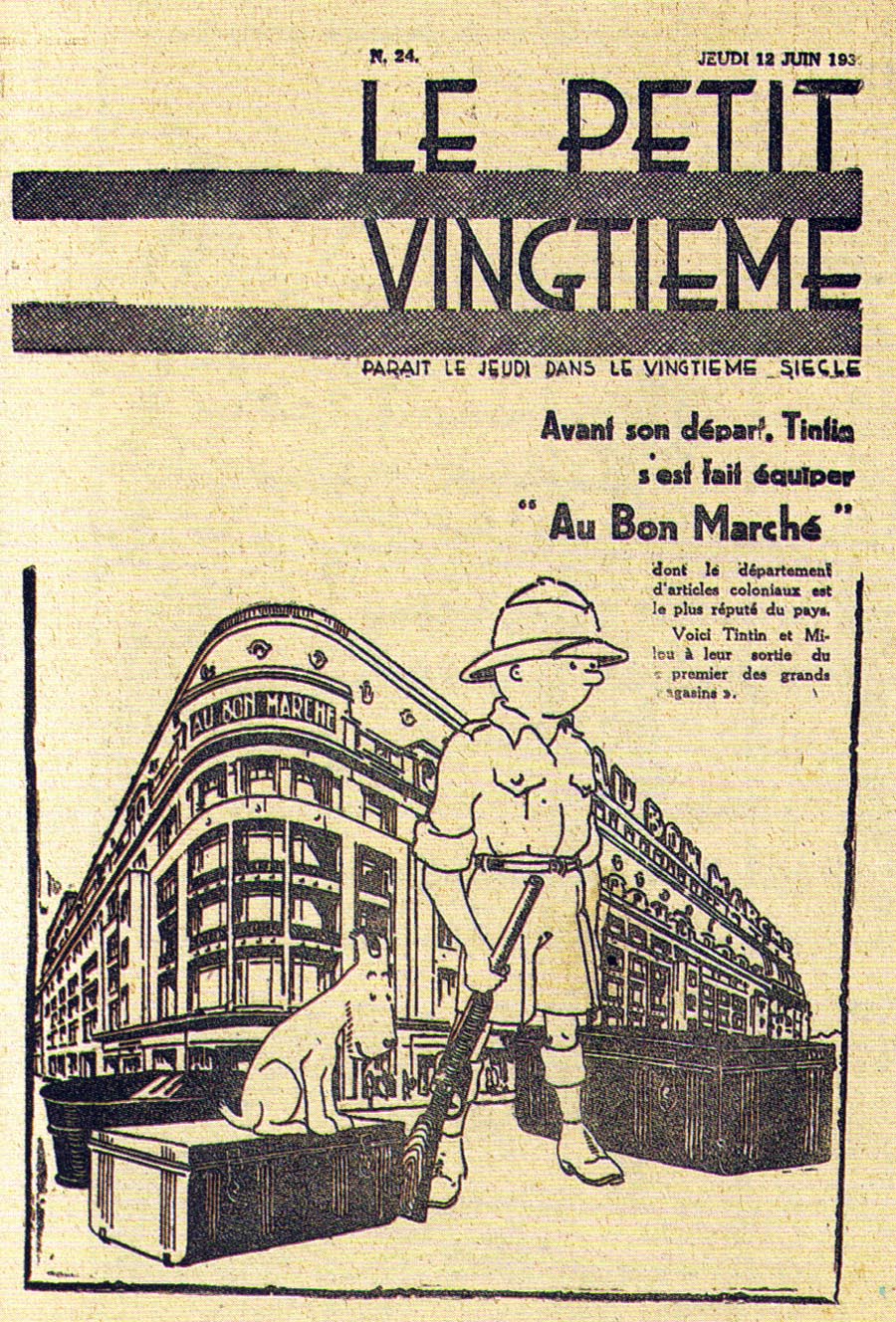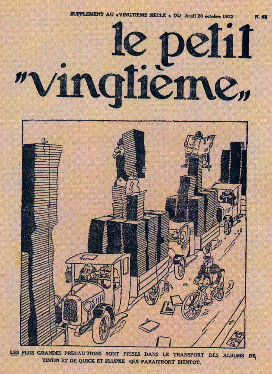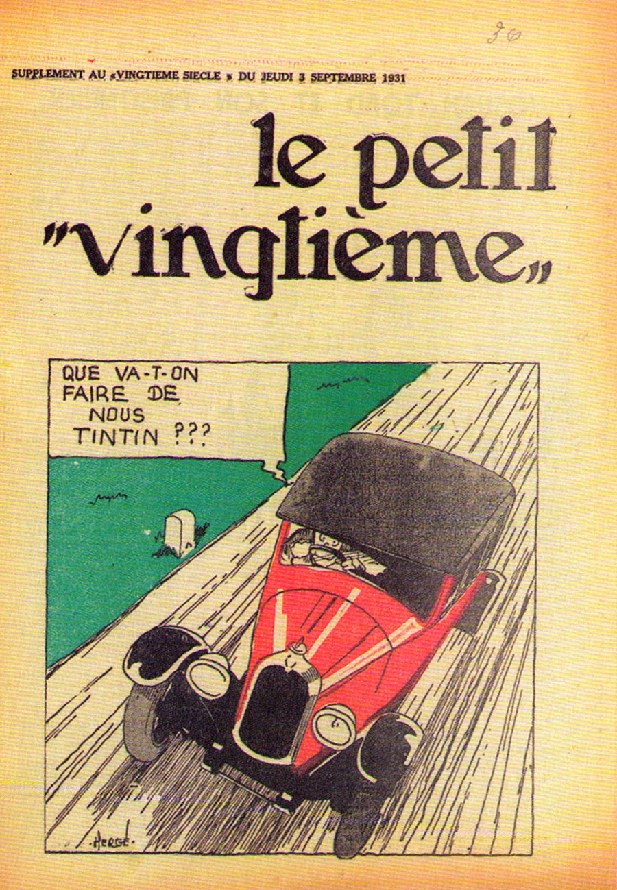 Le rédacteur en chef du Petit Vingtième était Georges Remi, plus connu sous le pseudonyme Hergé. Après avoir illustré pendant 10 semaines une histoire écrite par un rédacteur sportif du nom d’Armand De Smet (L’extraordinaire aventure de Flup, Nénesse, Poussette et Cochonnet), Hergé crée, le 10 janvier 1929, son propre personnage : Tintin, et l’envoie, sur les conseils de l’abbé Wallez (qui ne portait pas les “Bolcheviks” dans son cœur… loin de là), au pays des Soviets. C’est là que l’aventure véritable du “Petit Vingtième” commence vraiment ainsi que celle de Tintin !