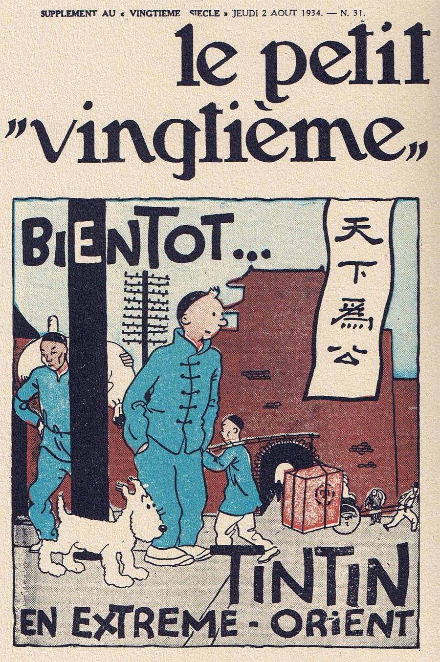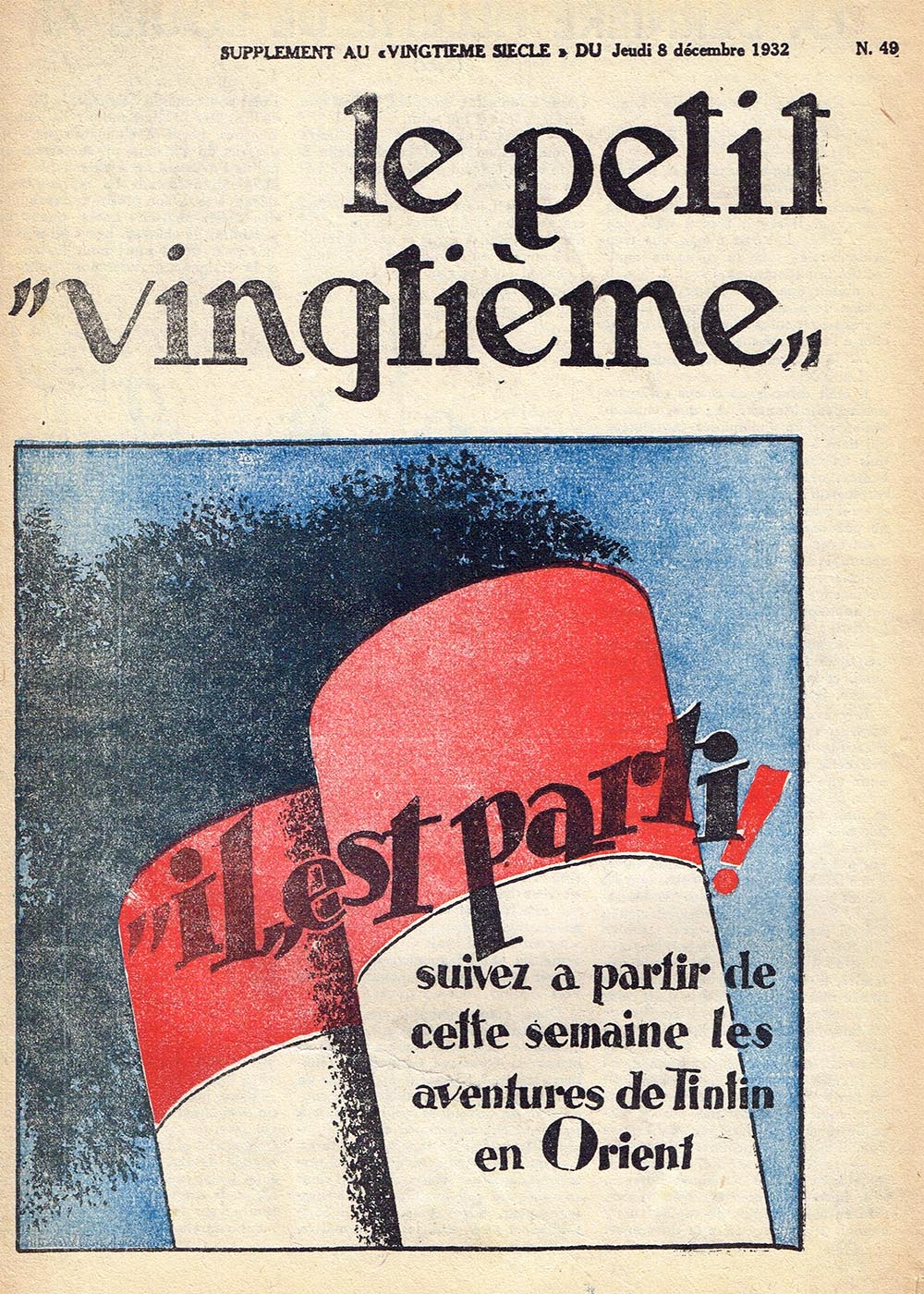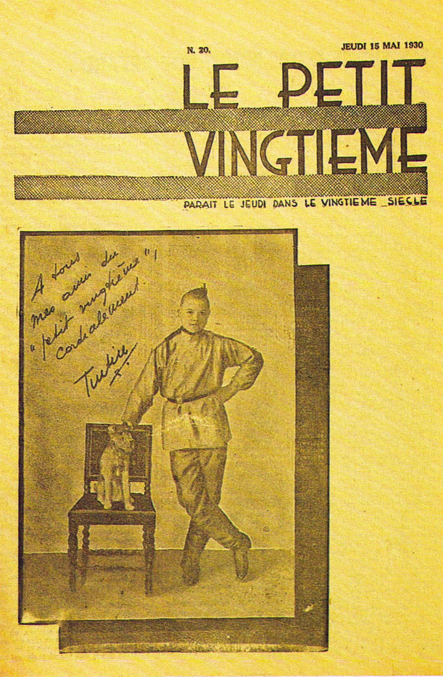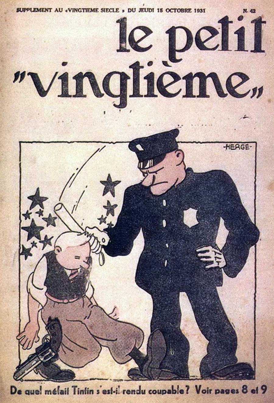 Le rédacteur en chef du Petit Vingtième était Georges Remi, plus connu sous le pseudonyme Hergé. Après avoir illustré pendant 10 semaines une histoire écrite par un rédacteur sportif du nom d’Armand De Smet (L’extraordinaire aventure de Flup, Nénesse, Poussette et Cochonnet), Hergé crée, le 10 janvier 1929, son propre personnage : Tintin, et l’envoie, sur les conseils de l’abbé Wallez (qui ne portait pas les “Bolcheviks” dans son cœur… loin de là), au pays des Soviets. C’est là que l’aventure véritable du “Petit Vingtième” commence vraiment ainsi que celle de Tintin !