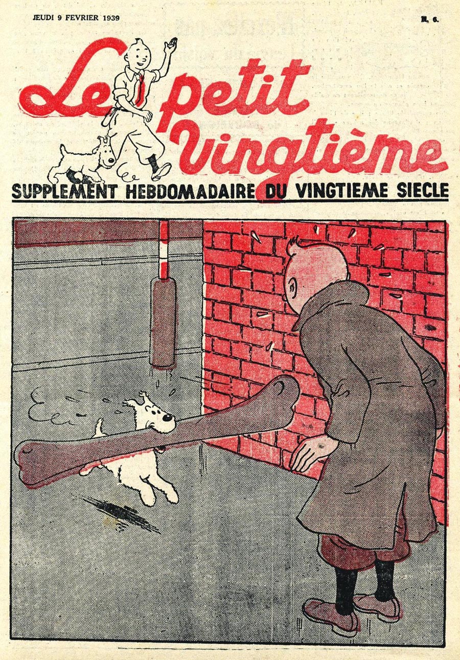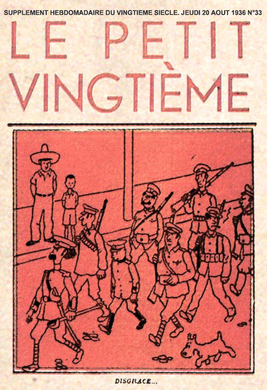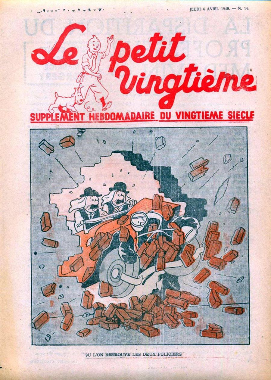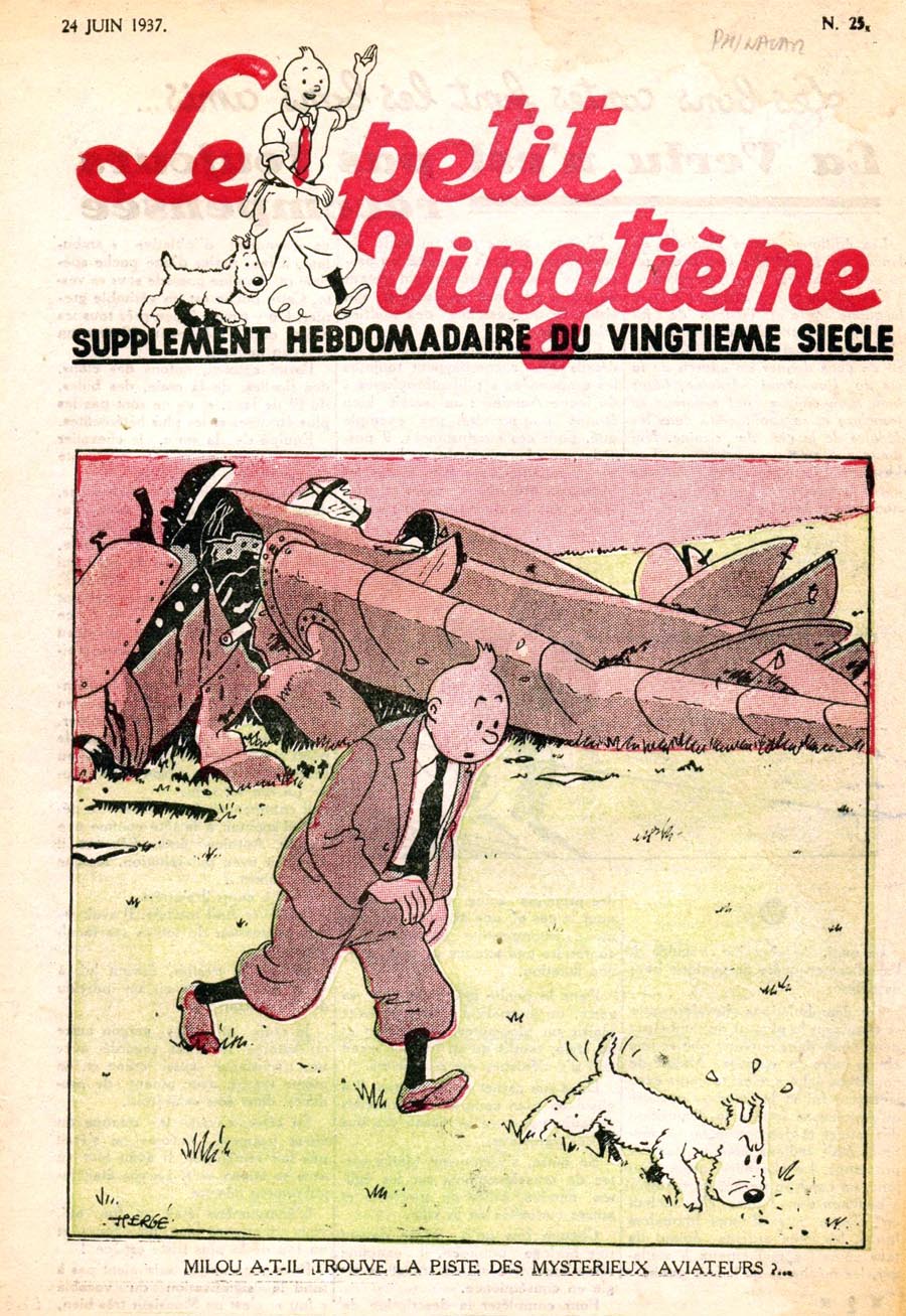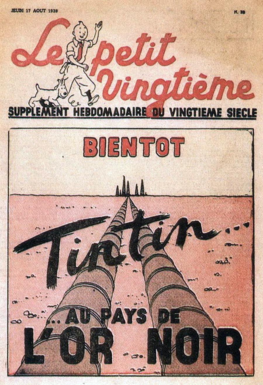Pratiquement chaque semaine, jusqu’au 9 mai 1940, (date de l’invasion de la Belgique par les troupes allemandes) “Le Petit Vingtième” publiera sur une double page les Aventures de Tintin en pré-publication. La dernière aventure sera interrompue le 9 mai 1940 pour cause d’invasion allemande de la Belgique. La dernière case représentait Tintin, dans le désert, sous la menace du fusil de Müller.