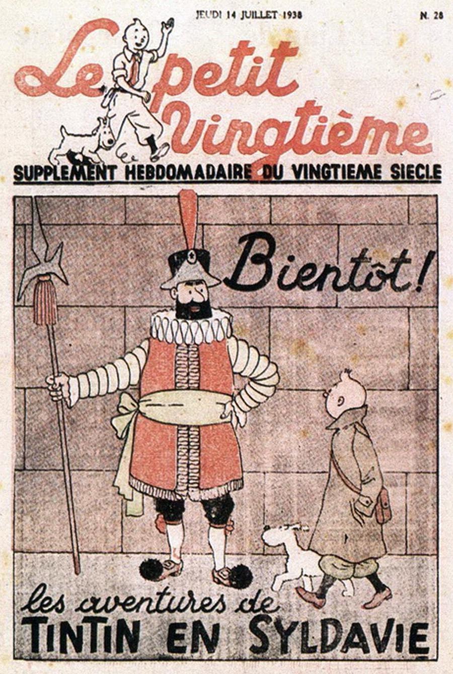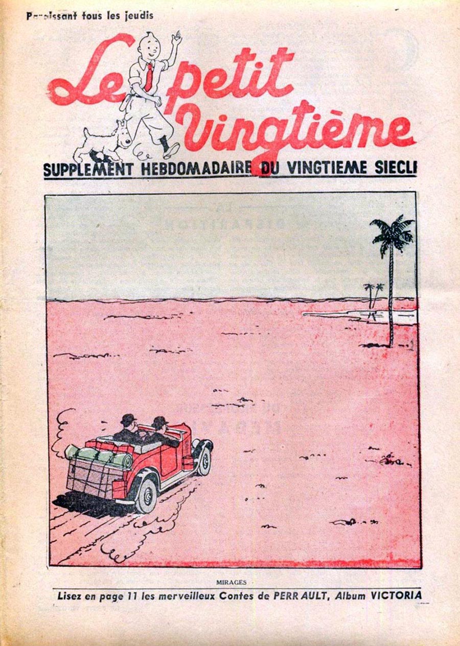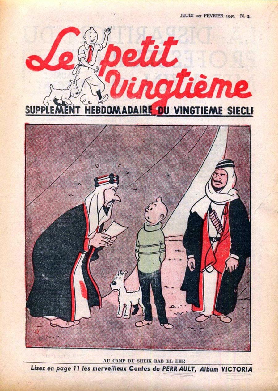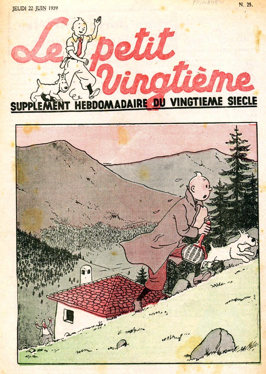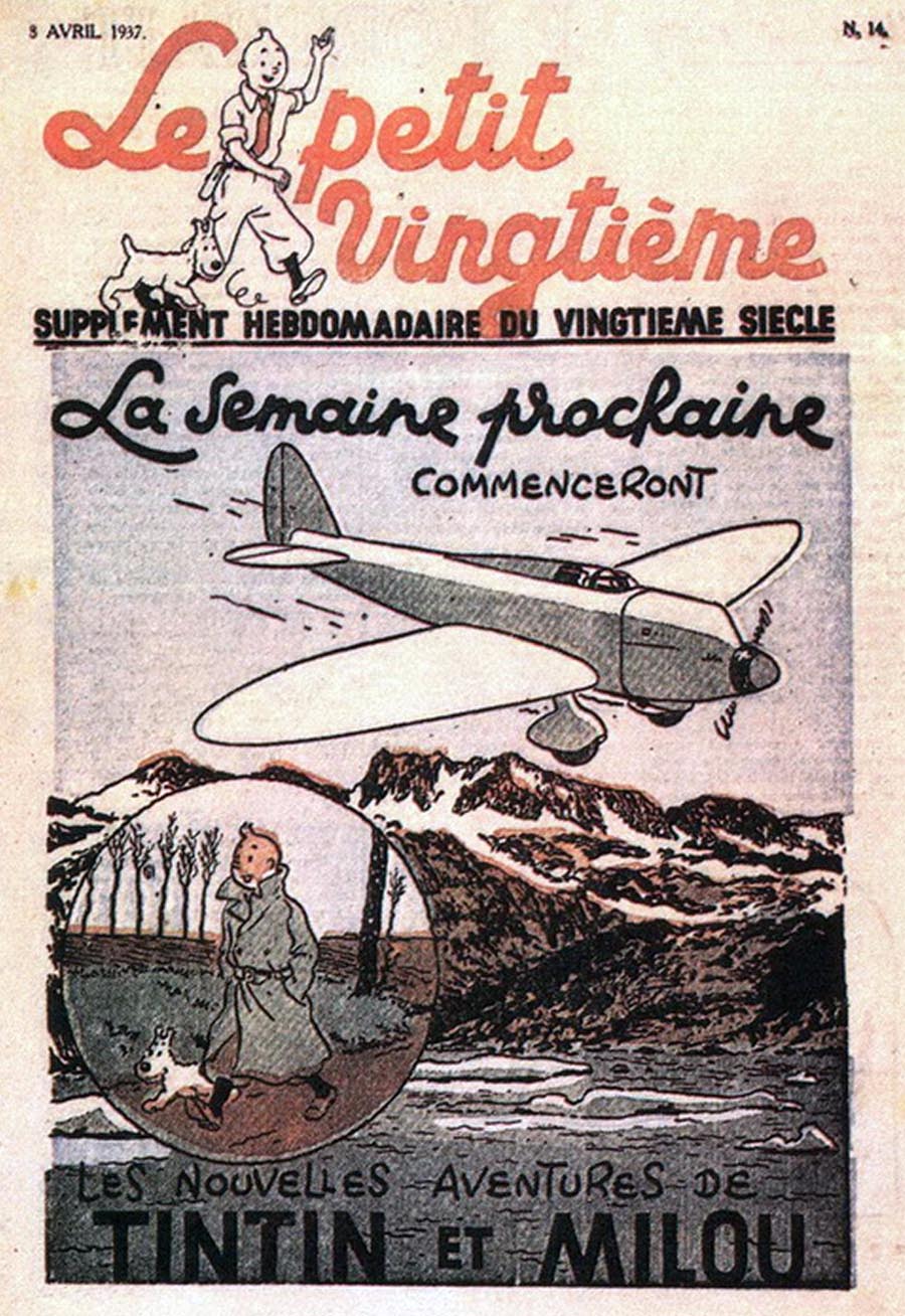 Pratiquement chaque semaine, jusqu’au 9 mai 1940, (date de l’invasion de la Belgique par les troupes allemandes) “Le Petit Vingtième” publiera sur une double page les Aventures de Tintin en pré-publication. La dernière aventure sera interrompue le 9 mai 1940 pour cause d’invasion allemande de la Belgique. La dernière case représentait Tintin, dans le désert, sous la menace du fusil de Müller.
