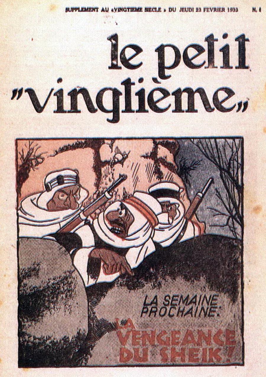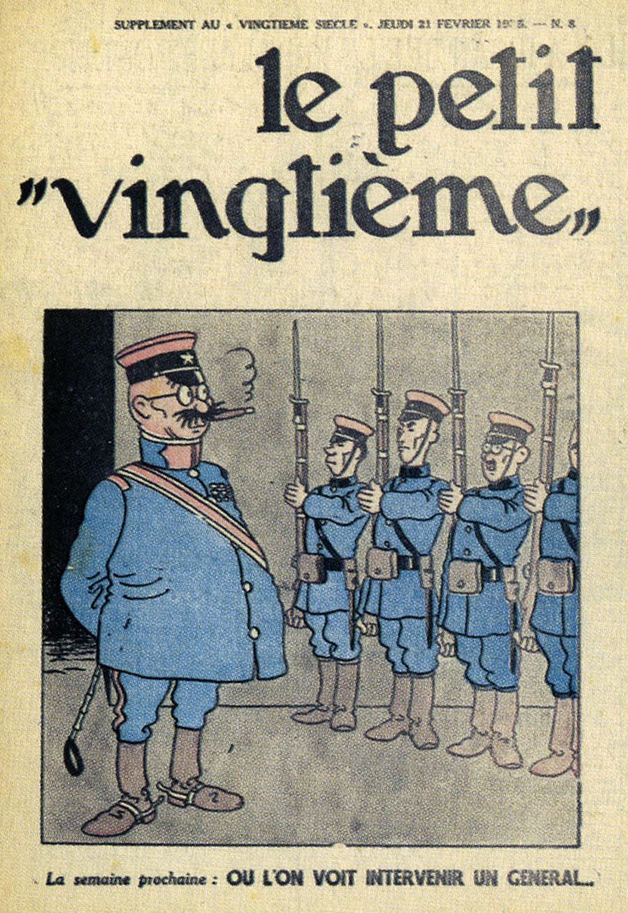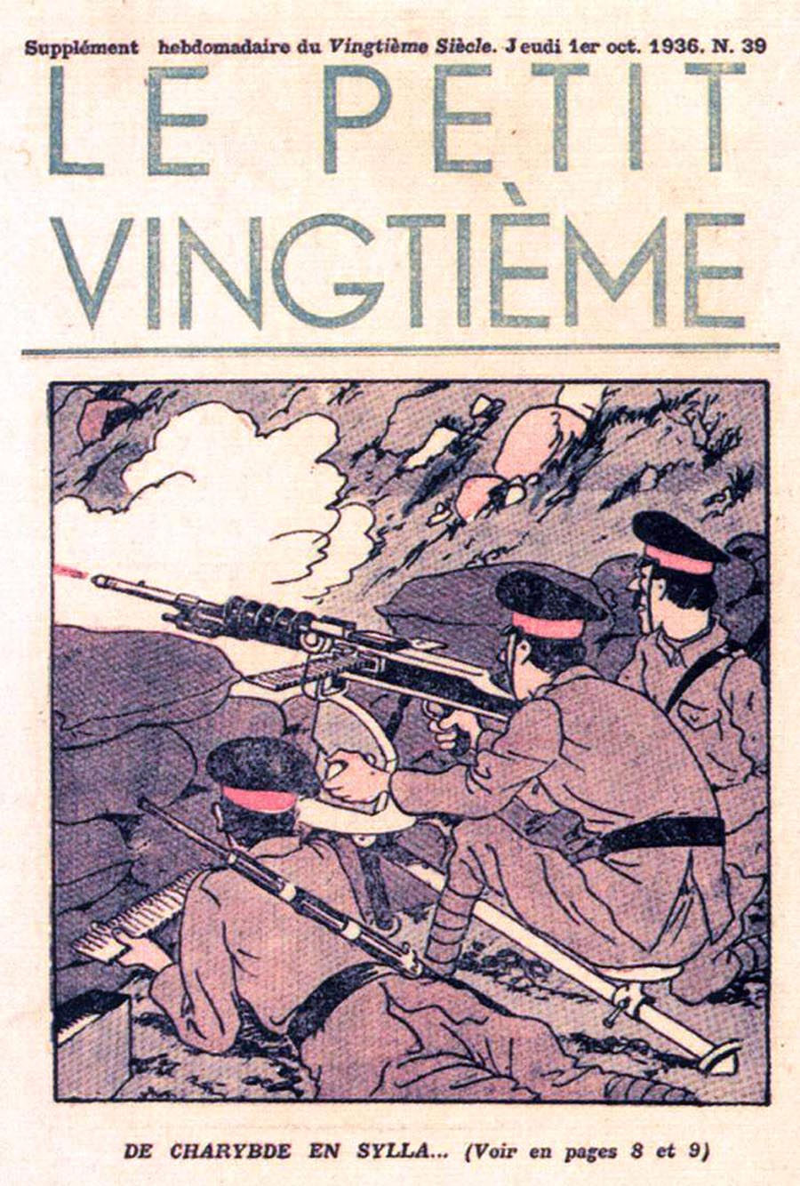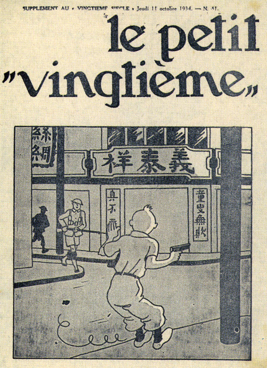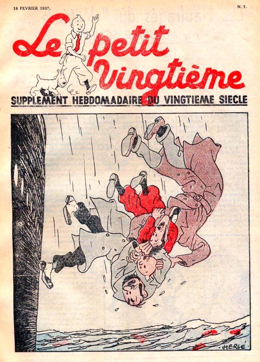 Pratiquement chaque semaine, jusqu’au 9 mai 1940, (date de l’invasion de la Belgique par les troupes allemandes) “Le Petit Vingtième” publiera sur une double page les Aventures de Tintin en pré-publication. La dernière aventure sera interrompue le 9 mai 1940 pour cause d’invasion allemande de la Belgique. La dernière case représentait Tintin, dans le désert, sous la menace du fusil de Müller.
