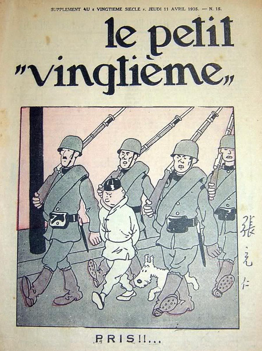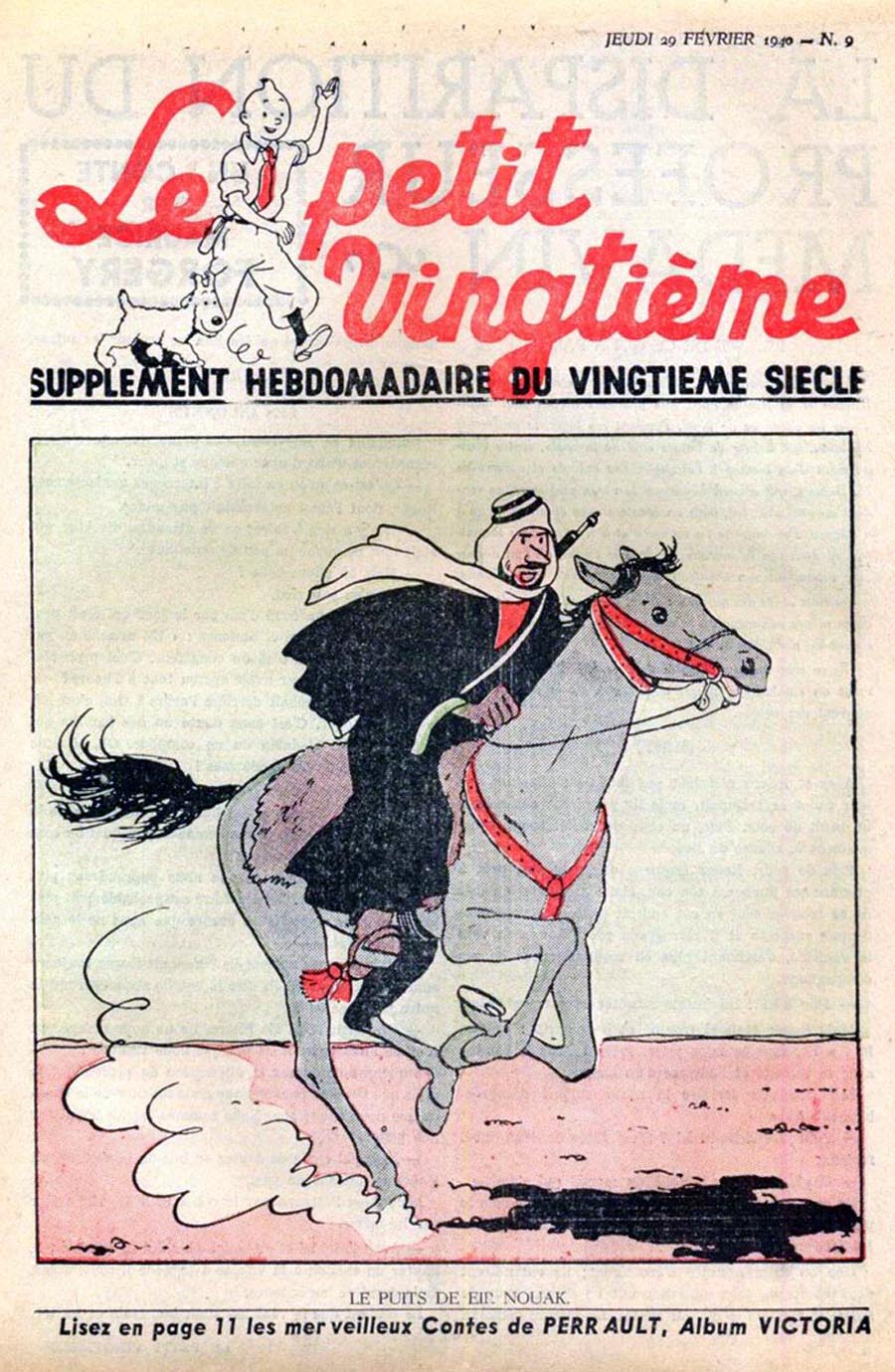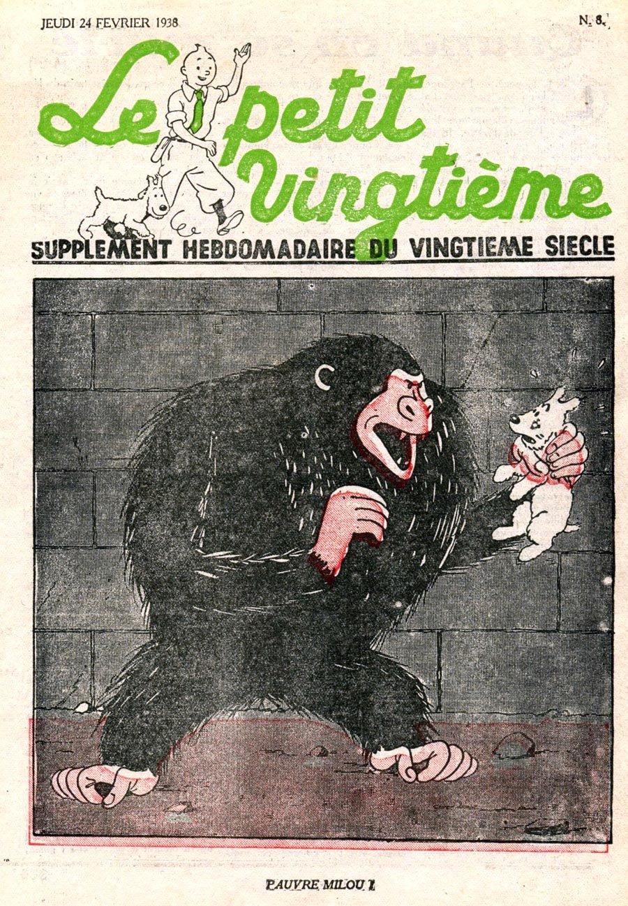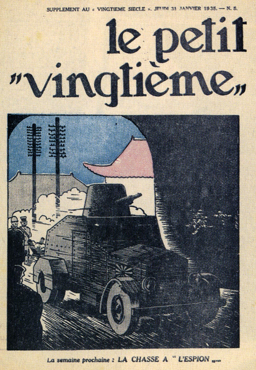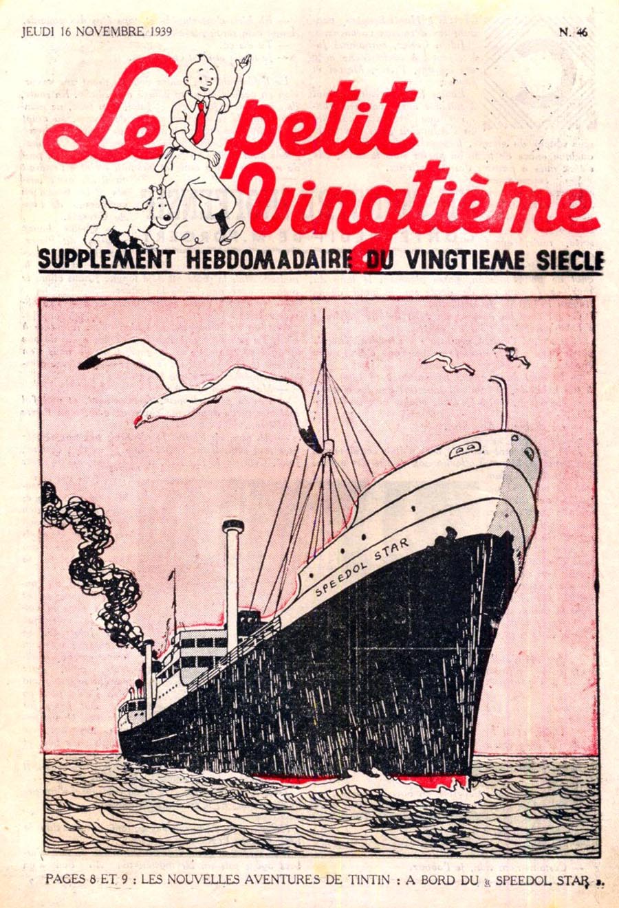 Pratiquement chaque semaine, jusqu’au 9 mai 1940, (date de l’invasion de la Belgique par les troupes allemandes) “Le Petit Vingtième” publiera sur une double page les Aventures de Tintin en pré-publication. La dernière aventure sera interrompue le 9 mai 1940 pour cause d’invasion allemande de la Belgique. La dernière case représentait Tintin, dans le désert, sous la menace du fusil de Müller.