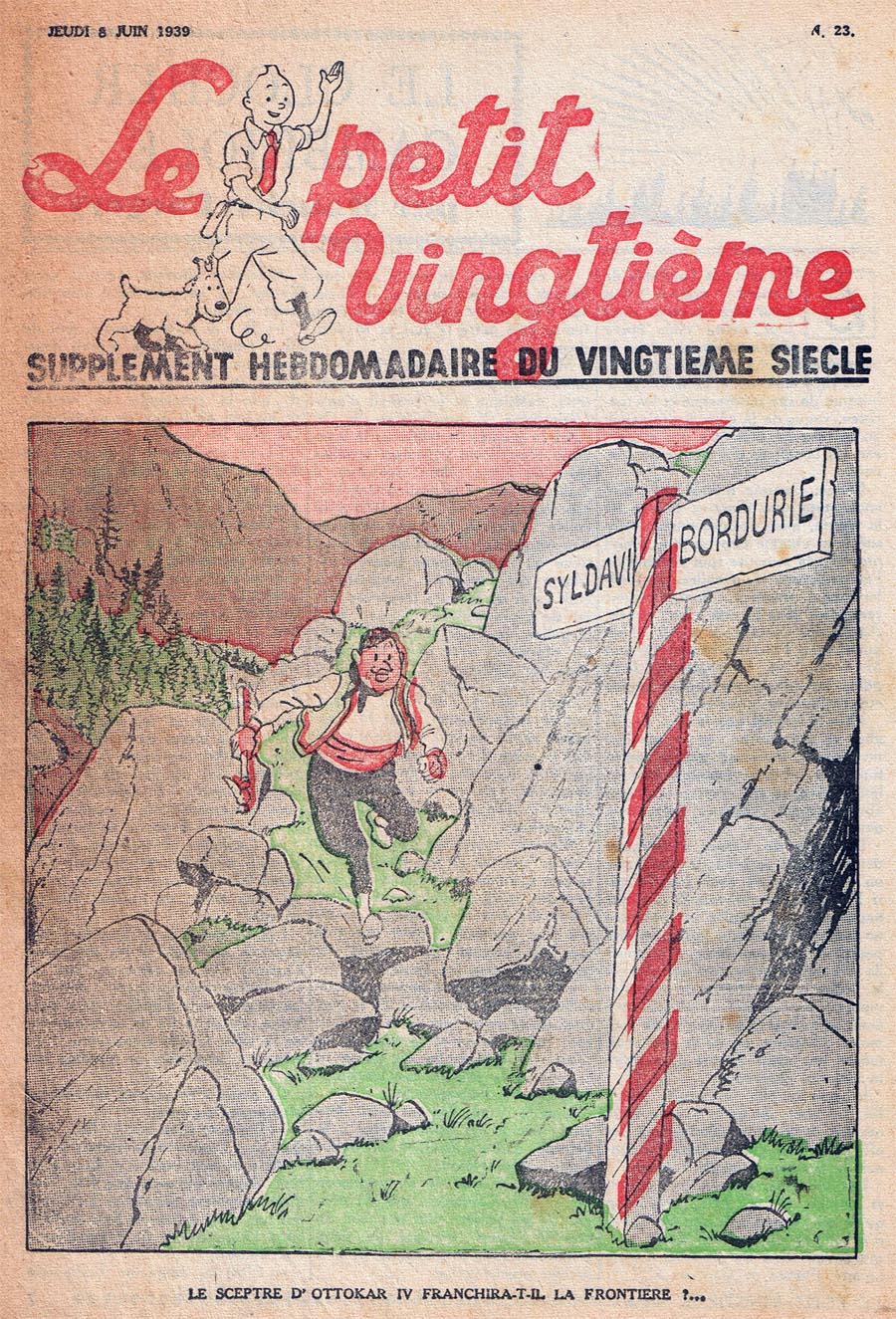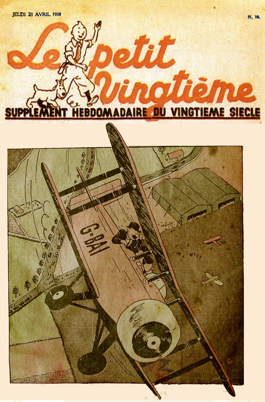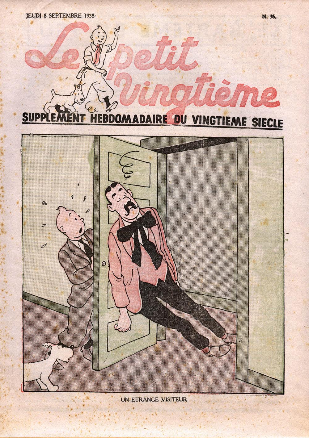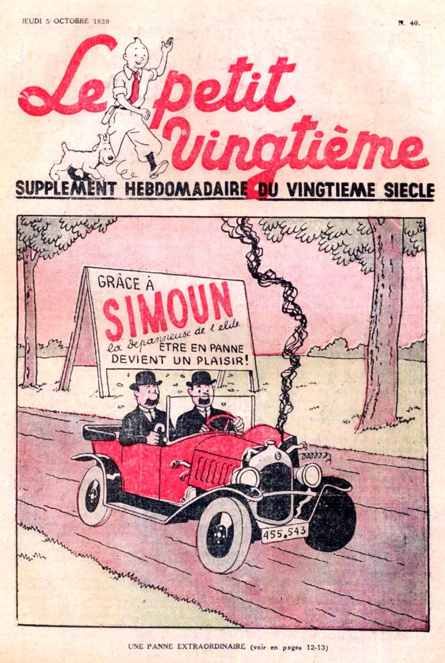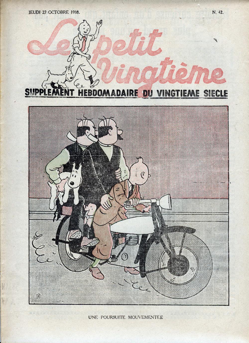 Pratiquement chaque semaine, jusqu’au 9 mai 1940, (date de l’invasion de la Belgique par les troupes allemandes) “Le Petit Vingtième” publiera sur une double page les Aventures de Tintin en pré-publication. La dernière aventure sera interrompue le 9 mai 1940 pour cause d’invasion allemande de la Belgique. La dernière case représentait Tintin, dans le désert, sous la menace du fusil de Müller.