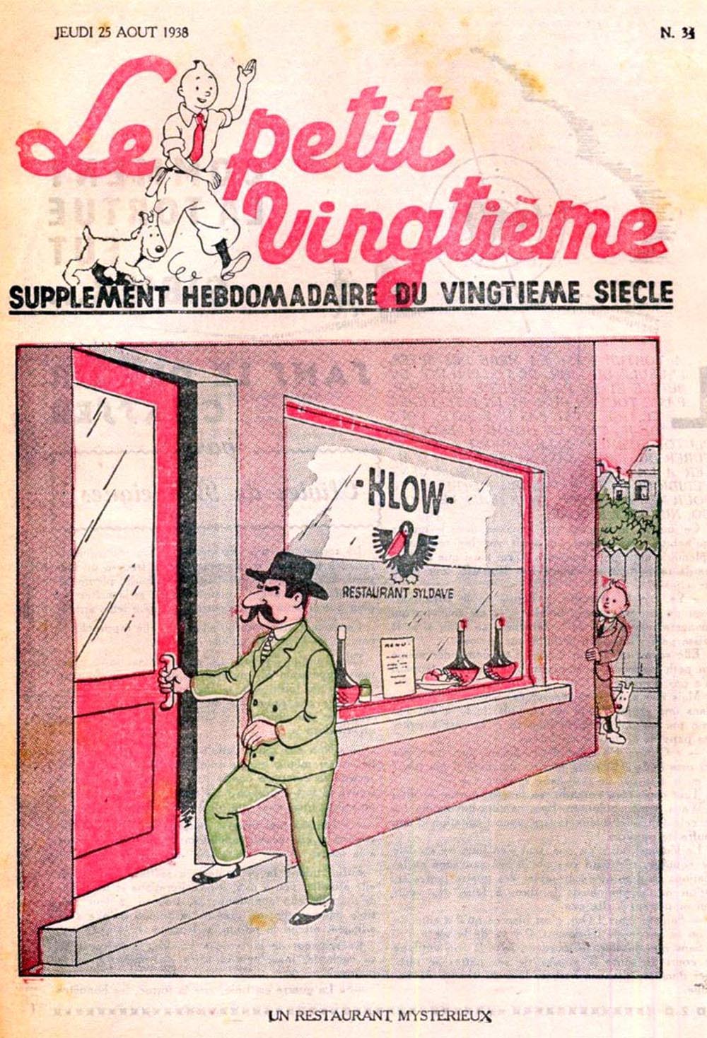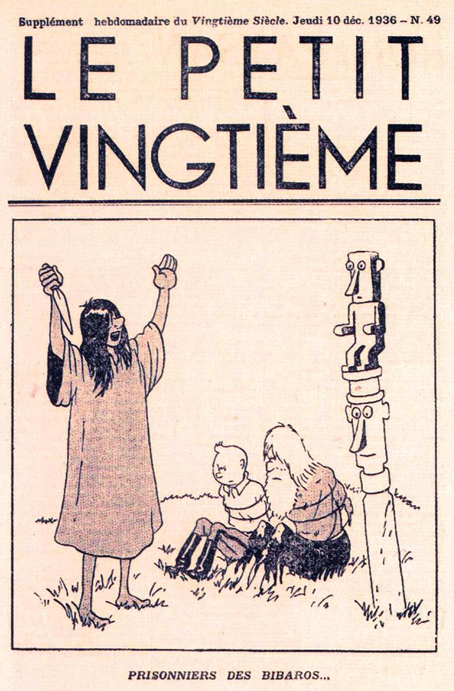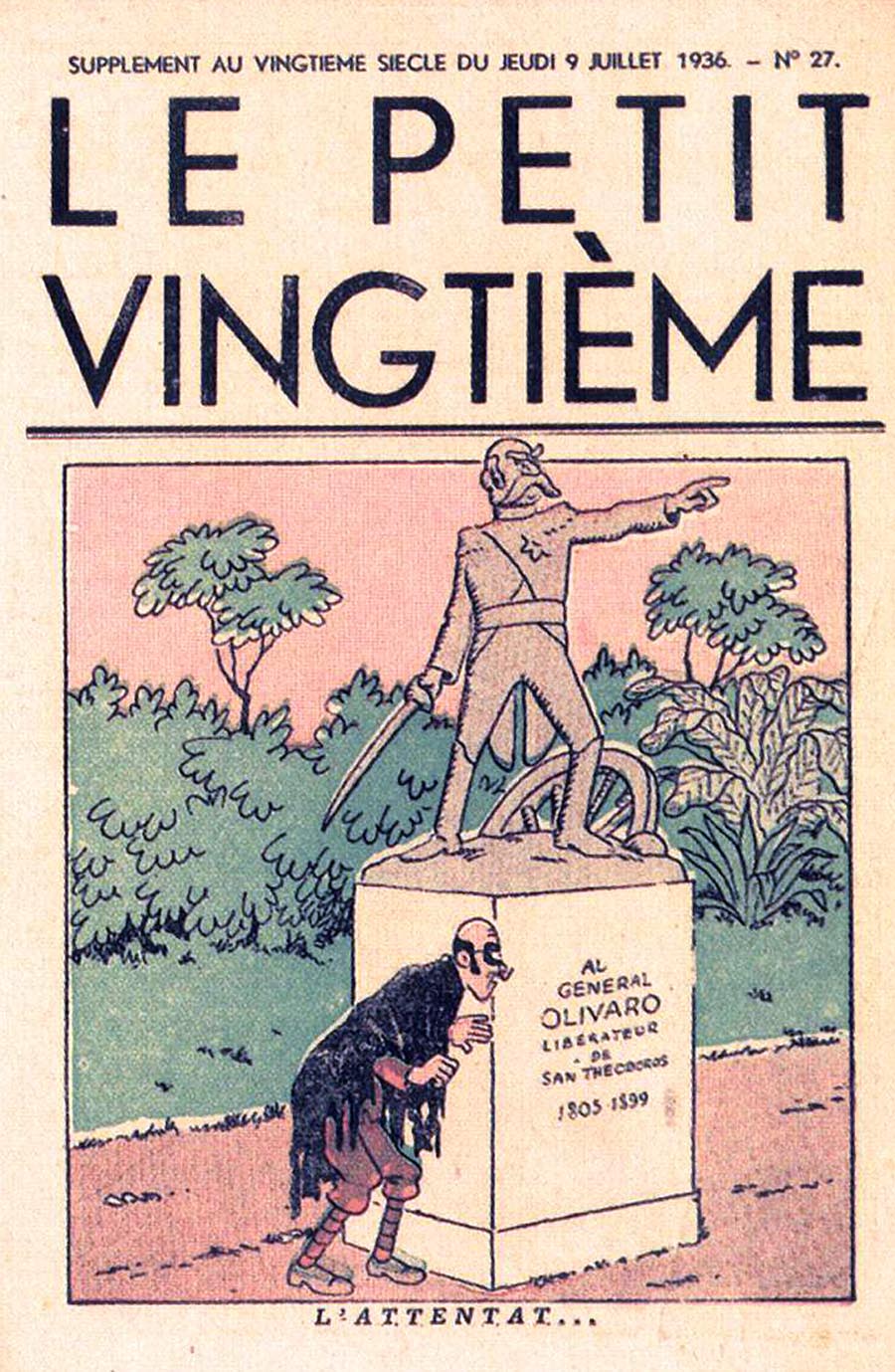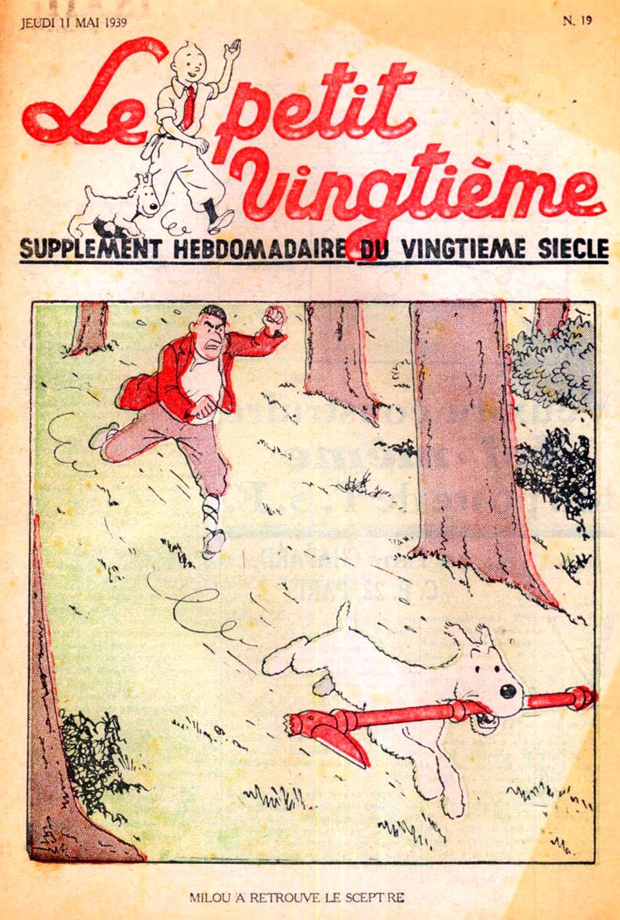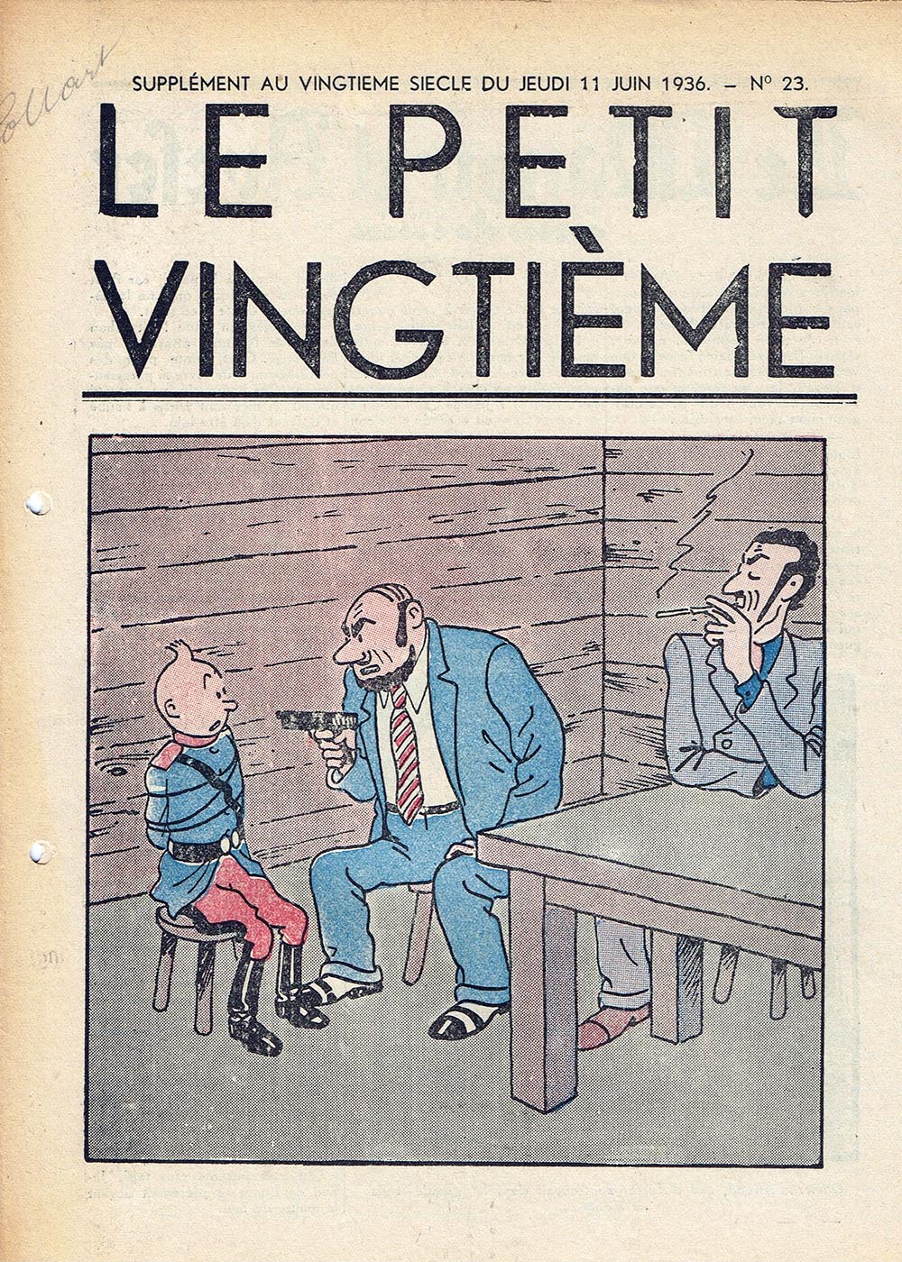 Pratiquement chaque semaine, jusqu’au 9 mai 1940, (date de l’invasion de la Belgique par les troupes allemandes) “Le Petit Vingtième” publiera sur une double page les Aventures de Tintin en pré-publication. La dernière aventure sera interrompue le 9 mai 1940 pour cause d’invasion allemande de la Belgique. La dernière case représentait Tintin, dans le désert, sous la menace du fusil de Müller.