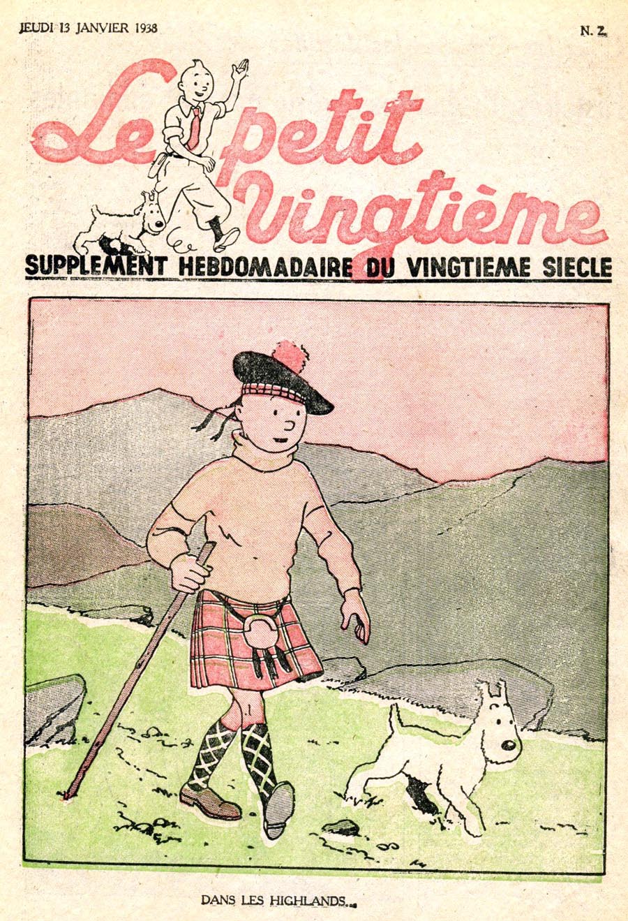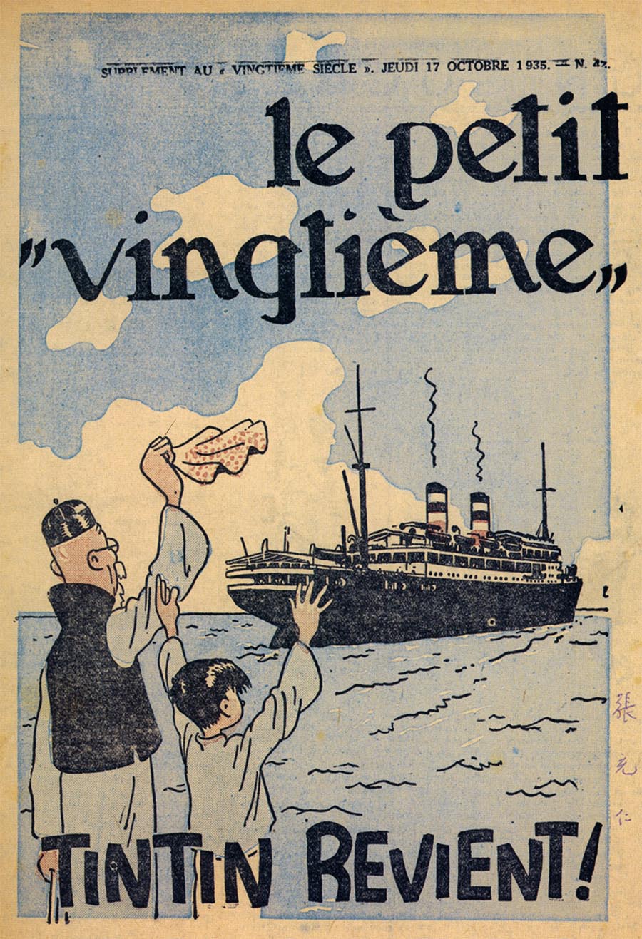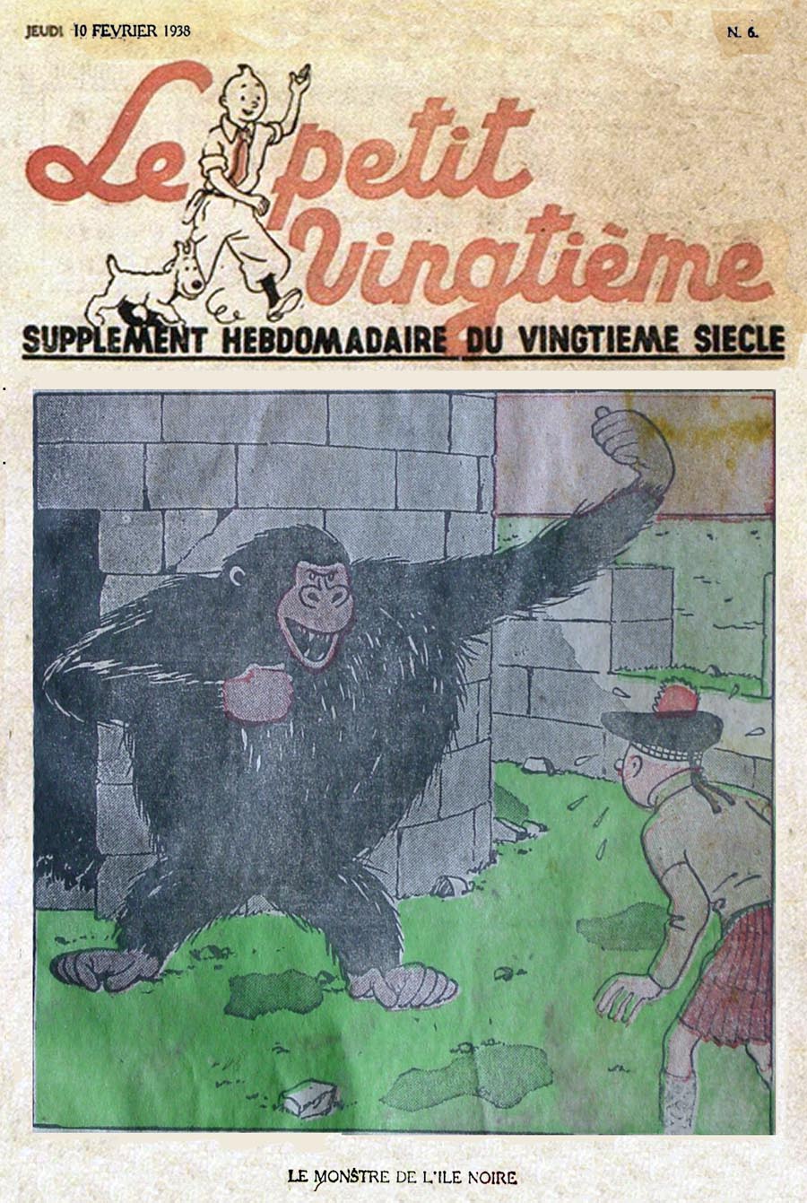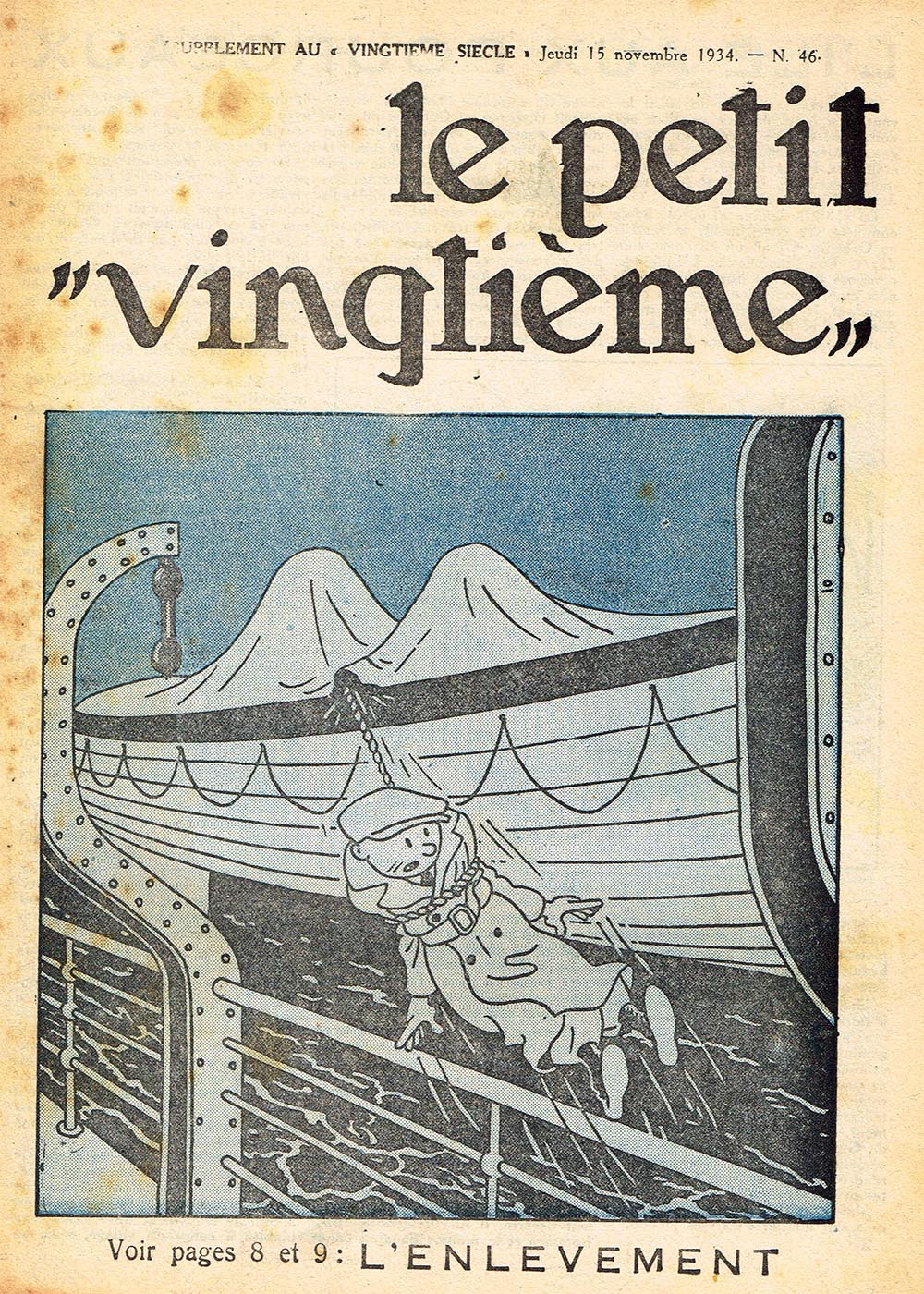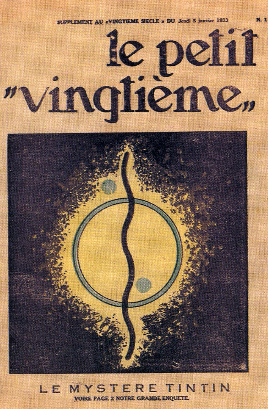 Pratiquement chaque semaine, jusqu’au 9 mai 1940, (date de l’invasion de la Belgique par les troupes allemandes) “Le Petit Vingtième” publiera sur une double page les Aventures de Tintin en pré-publication. La dernière aventure sera interrompue le 9 mai 1940 pour cause d’invasion allemande de la Belgique. La dernière case représentait Tintin, dans le désert, sous la menace du fusil de Müller.