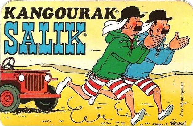 Vers la fin de l’année 1979, le Studio Hergé (via l’agence Publiart) accepta une proposition de publicité du fabricant de vêtements néerlandais AGU pour son manteau de pluie (façon Kway) commercialisé sous le nom de Kangourak Salik.