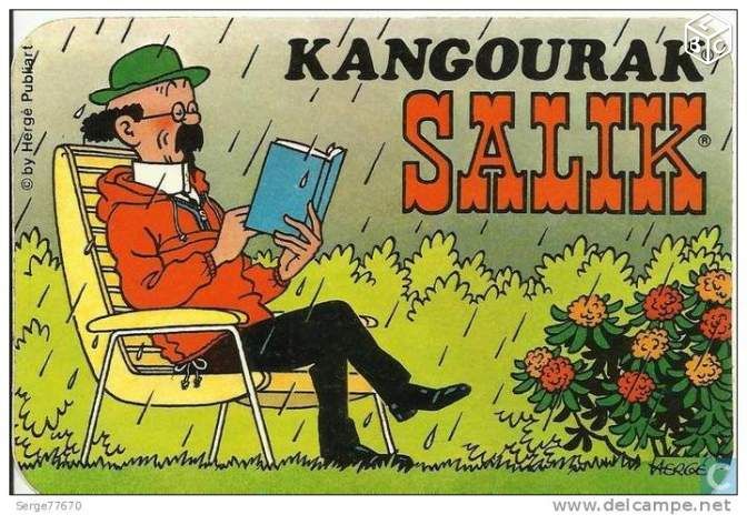 Vers la fin de l’année 1979, le Studio Hergé (via l’agence Publiart) accepta une proposition de publicité du fabricant de vêtements néerlandais AGU pour son manteau de pluie (façon Kway) commercialisé sous le nom de Kangourak Salik.