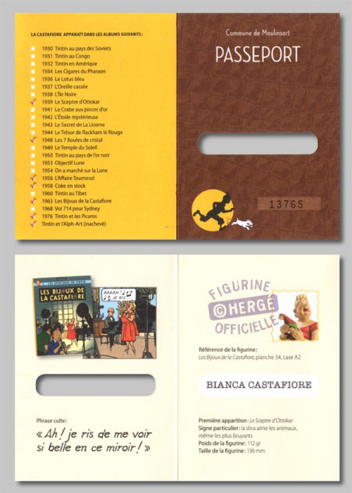 - Version Moulinsart : avec le logo tintin.com sous le socle, sans livret ni passeport