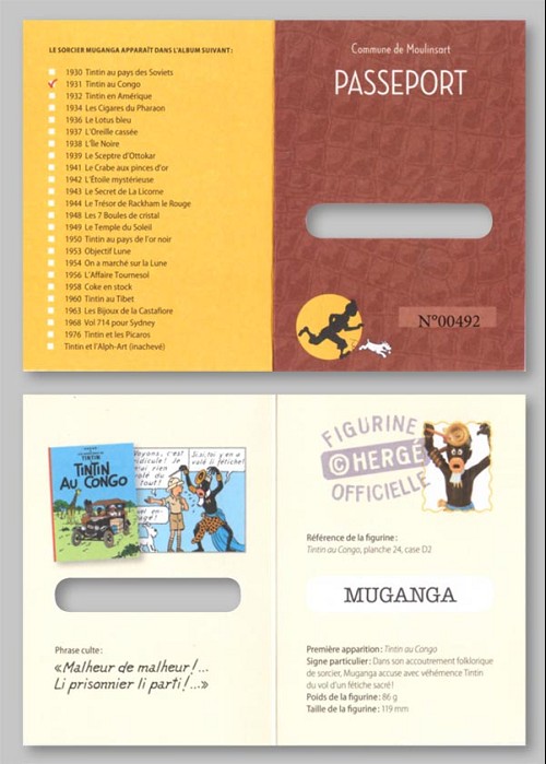 - Version Moulinsart : avec le logo tintin.com sous le socle, sans livret ni passeport