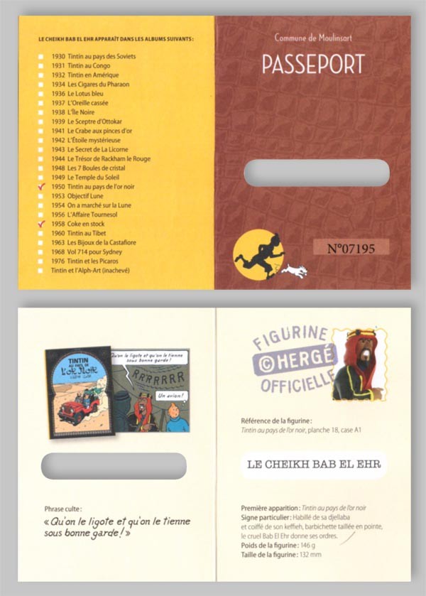 - Version Moulinsart : avec le logo tintin.com sous le socle, sans livret ni passeport