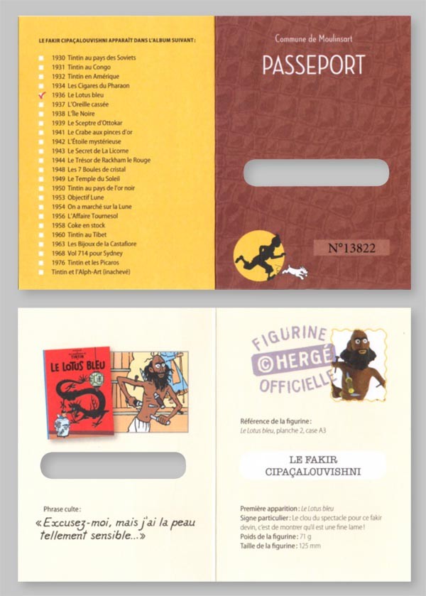 - Version Moulinsart : avec le logo tintin.com sous le socle, sans livret ni passeport