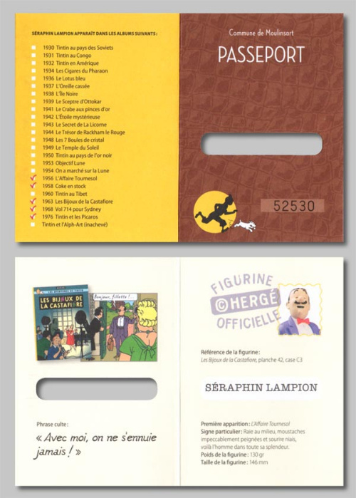 - Version Moulinsart : avec le logo tintin.com sous le socle, sans livret ni passeport