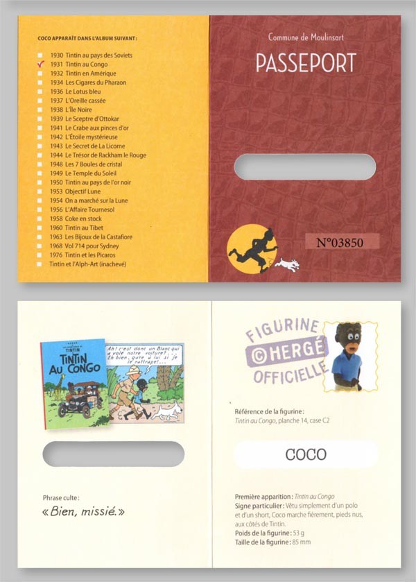 - Version Moulinsart : avec le logo tintin.com sous le socle, sans livret ni passeport