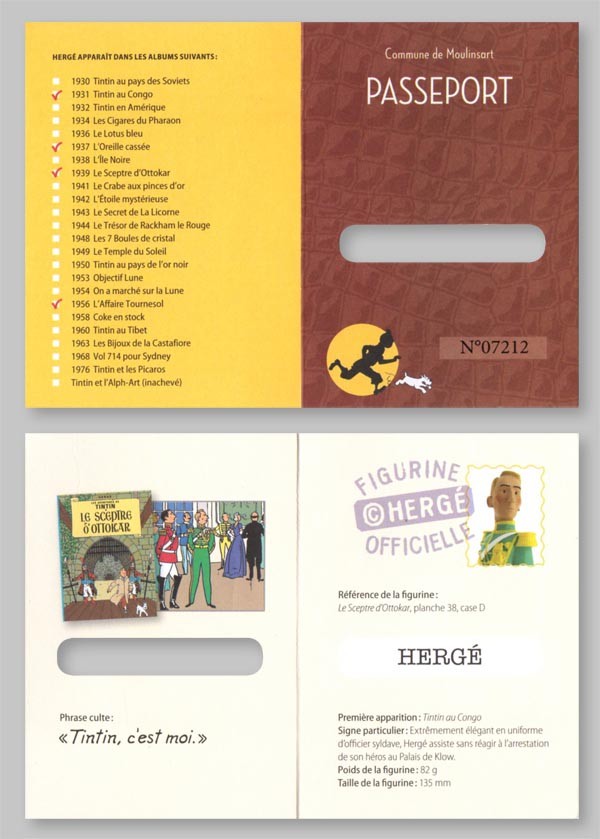- Version Moulinsart : avec le logo tintin.com sous le socle, sans livret ni passeport